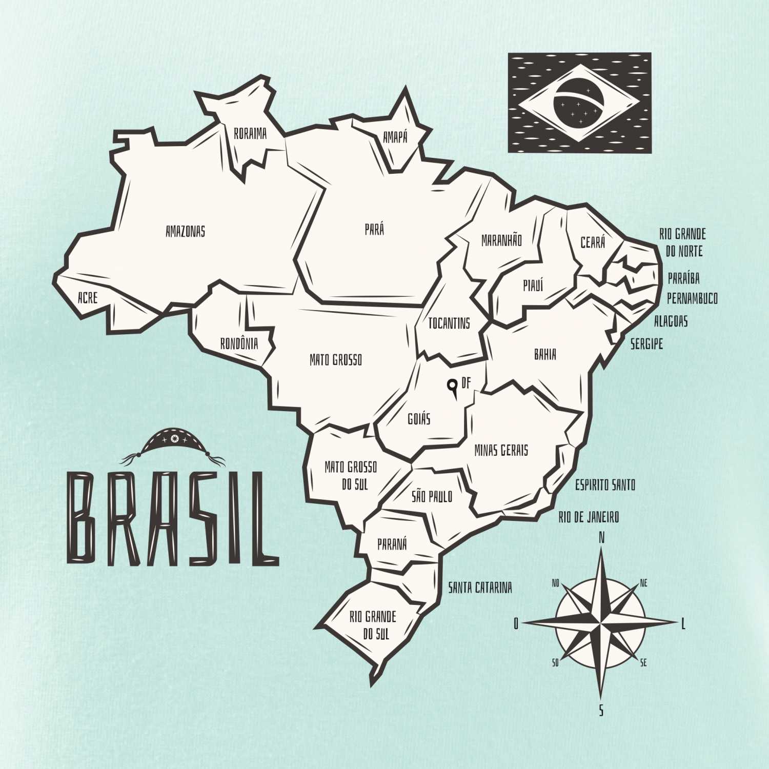 Brazília mapa s názvami regiónov