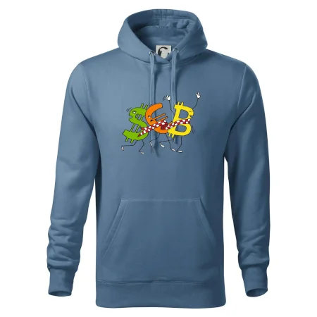 Menové tričko so symbolmi dolár, euro a bitcoin. Tričko pre zmenárnika alebo bankára.