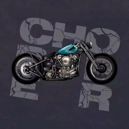 Tričko pre motorkárov, na ktorom je modrá motorka chopper. Motocykel by mal mať na tričku každý správny motorkár. Moto tričko s motorkou je vhodný darček pre motorkárov.