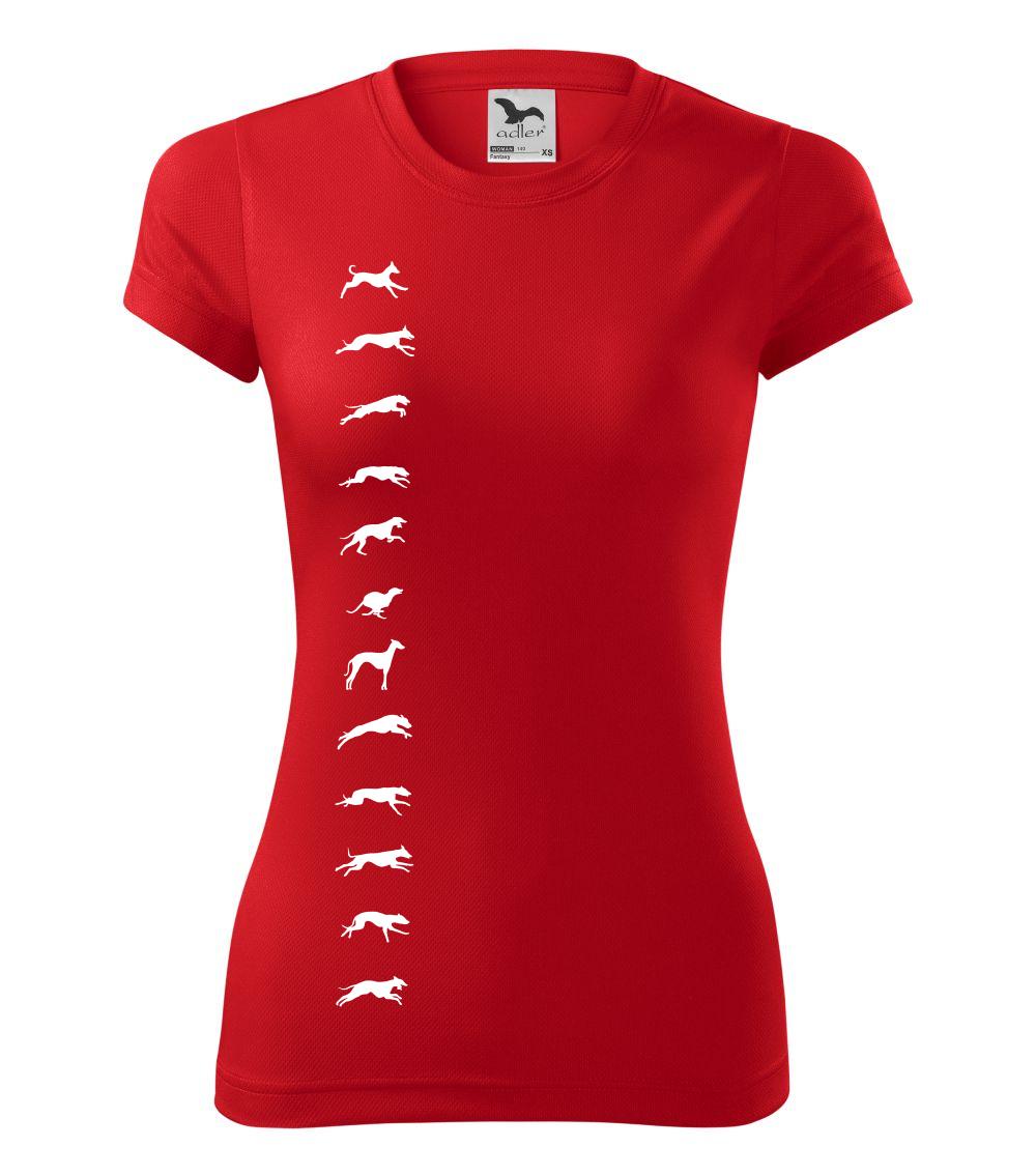 Chrti na tričku v pohybe. Zhora až dolu.