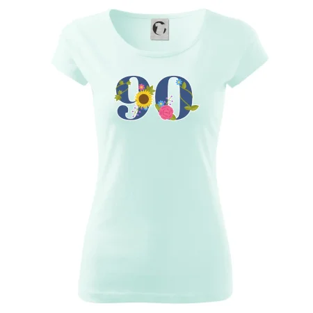 Narodeninové tričko pre oslávenca, ktorý oslavuje jubileum 90 rokov. Tričko, na ktorom je číslovka 90 s kvetmi. Darček k deväťdesiatym narodeninám.