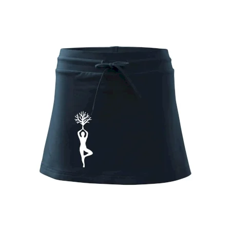 Dámska kraťasová sukňa MALFINI Two in One 604 je perfektnou kombináciou sukne a šortiek, ideálna na šport, voľný čas alebo ležérne nosenie. Vďaka prídavku elastanu si sukňa zachováva tvar a ponúka pohodlie pri pohybe. Krátky strih do tvaru „A“ a široký elastický pás so sťahovacou šnúrkou zabezpečujú voľnosť a prispôsobenie.