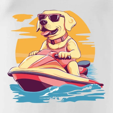 Zlatý retriever na vodnom skútri