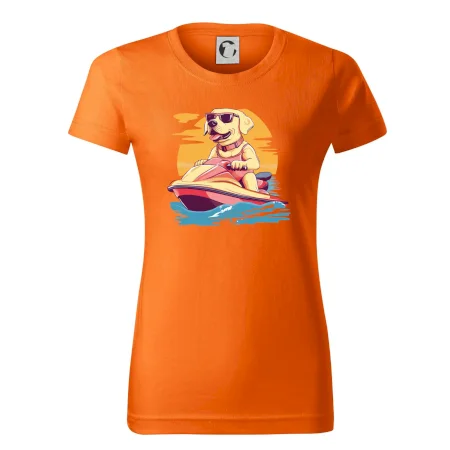 Zlatý retriever na vodnom skútri