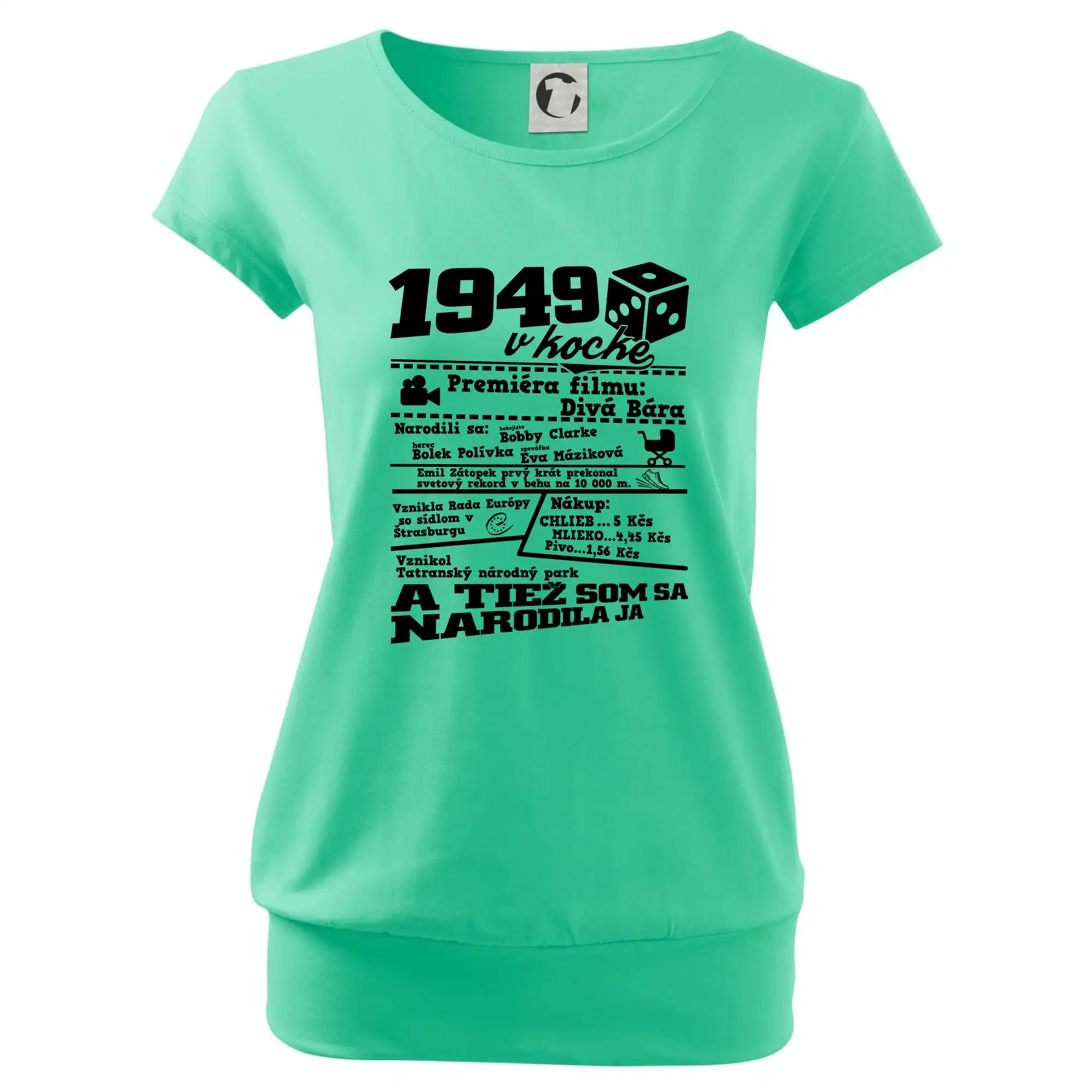 Trendové dámske tričko s veľmi krátkym rukávom, voľnejšieho strihu, v dolnom kraji všité do širokého lemu. Okrúhly priekrčník s úzkym lemom zo zhodného materiálu.