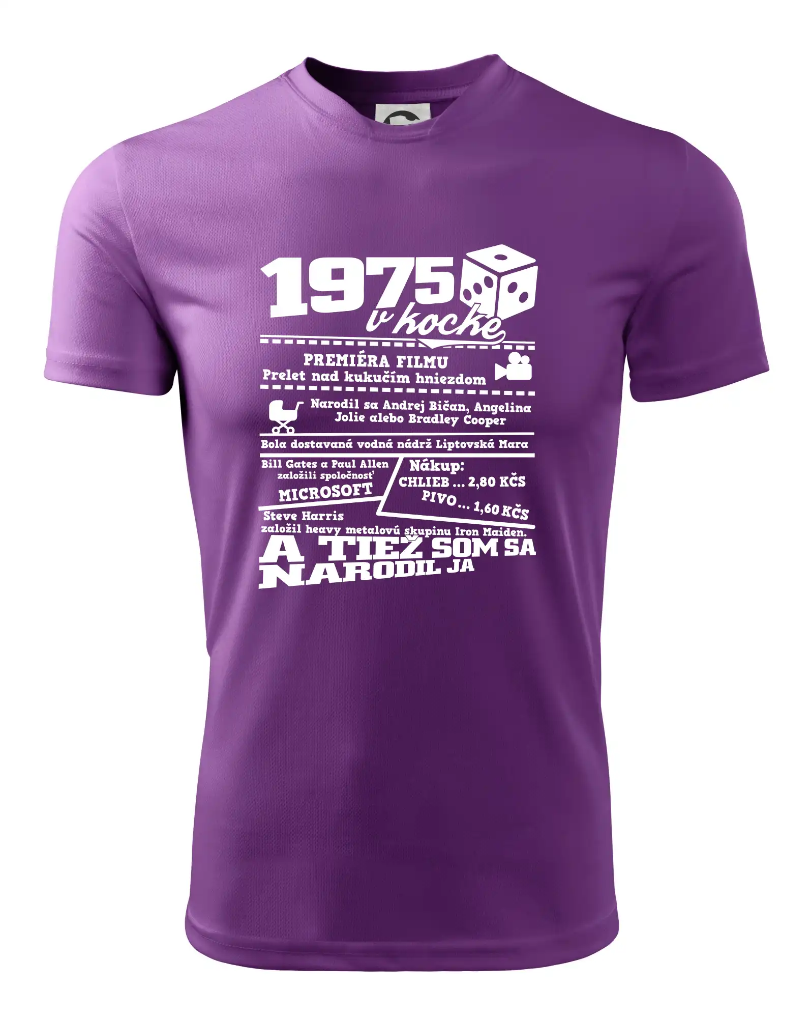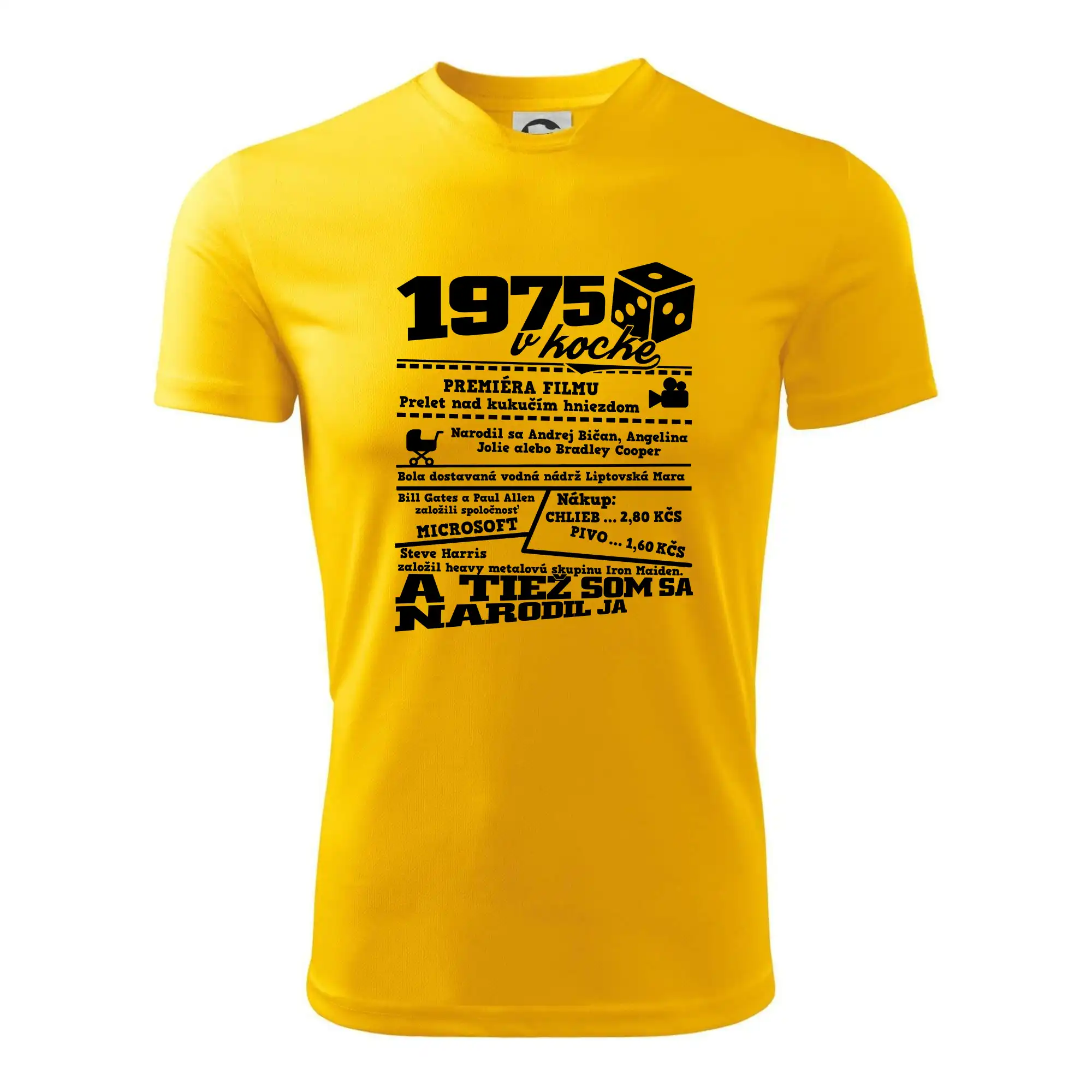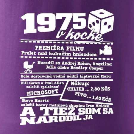 Narodeninové tričko pre ročník 1975. Zháňaš originálny darček? Tričko pre ročník 1975 v kocke je ten najlepší darček, ktorým iste potešíš. Koľko čo stálo? Kto bol prezident? Kto sa narodil? Všetko toto a ešte oveľa viac nájdeš na našom oslaveneckom triku!