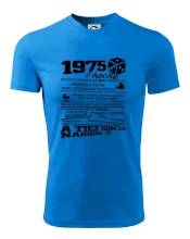 Narodeninové tričko pre ročník 1975. Zháňaš originálny darček? Tričko pre ročník 1975 v kocke je ten najlepší darček, ktorým iste potešíš. Koľko čo stálo? Kto bol prezident? Kto sa narodil? Všetko toto a ešte oveľa viac nájdeš na našom oslaveneckom triku!