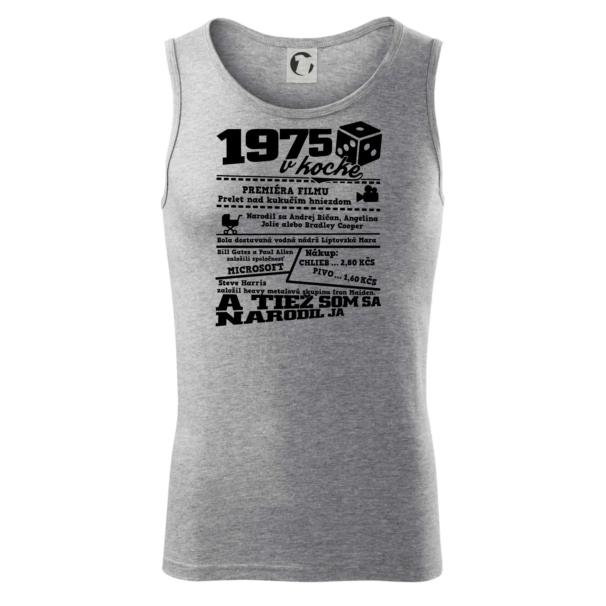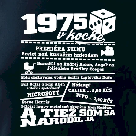 Narodeninové tričko pre ročník 1975. Zháňaš originálny darček? Tričko pre ročník 1975 v kocke je ten najlepší darček, ktorým iste potešíš. Koľko čo stálo? Kto bol prezident? Kto sa narodil? Všetko toto a ešte oveľa viac nájdeš na našom oslaveneckom triku!