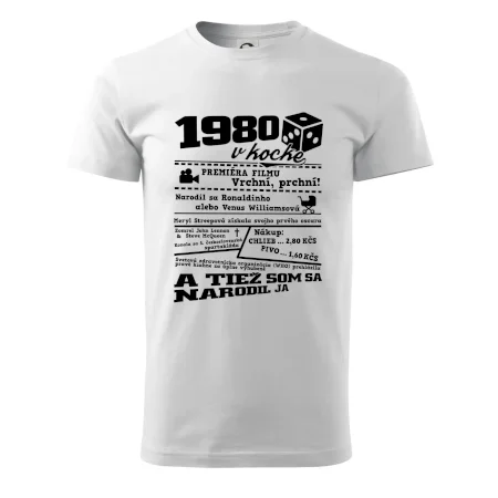 Narodeninové tričko pre ročník 1980. Zháňaš originálny darček? Tričko pre ročník 1980 v kocke je ten najlepší darček, ktorým určite potešíš. Koľko čo stálo? Kto bol prezident? Kto sa narodil? Všetko toto a ešte oveľa viac nájdeš na našom narodeninovom triku!