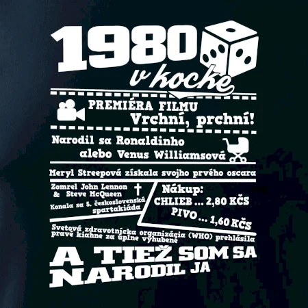 Narodeninové tričko pre ročník 1980. Zháňaš originálny darček? Tričko pre ročník 1980 v kocke je ten najlepší darček, ktorým určite potešíš. Koľko čo stálo? Kto bol prezident? Kto sa narodil? Všetko toto a ešte oveľa viac nájdeš na našom narodeninovom triku!