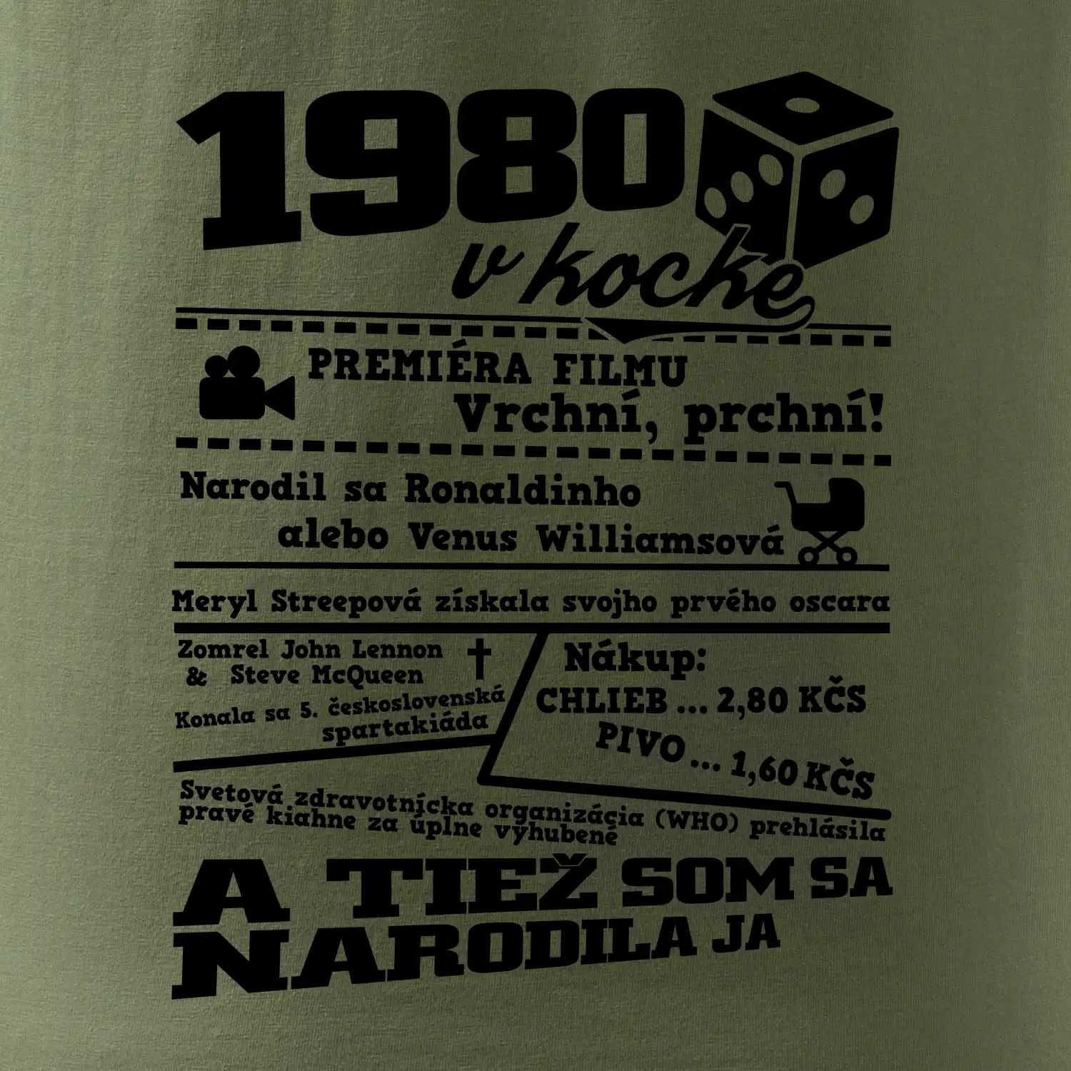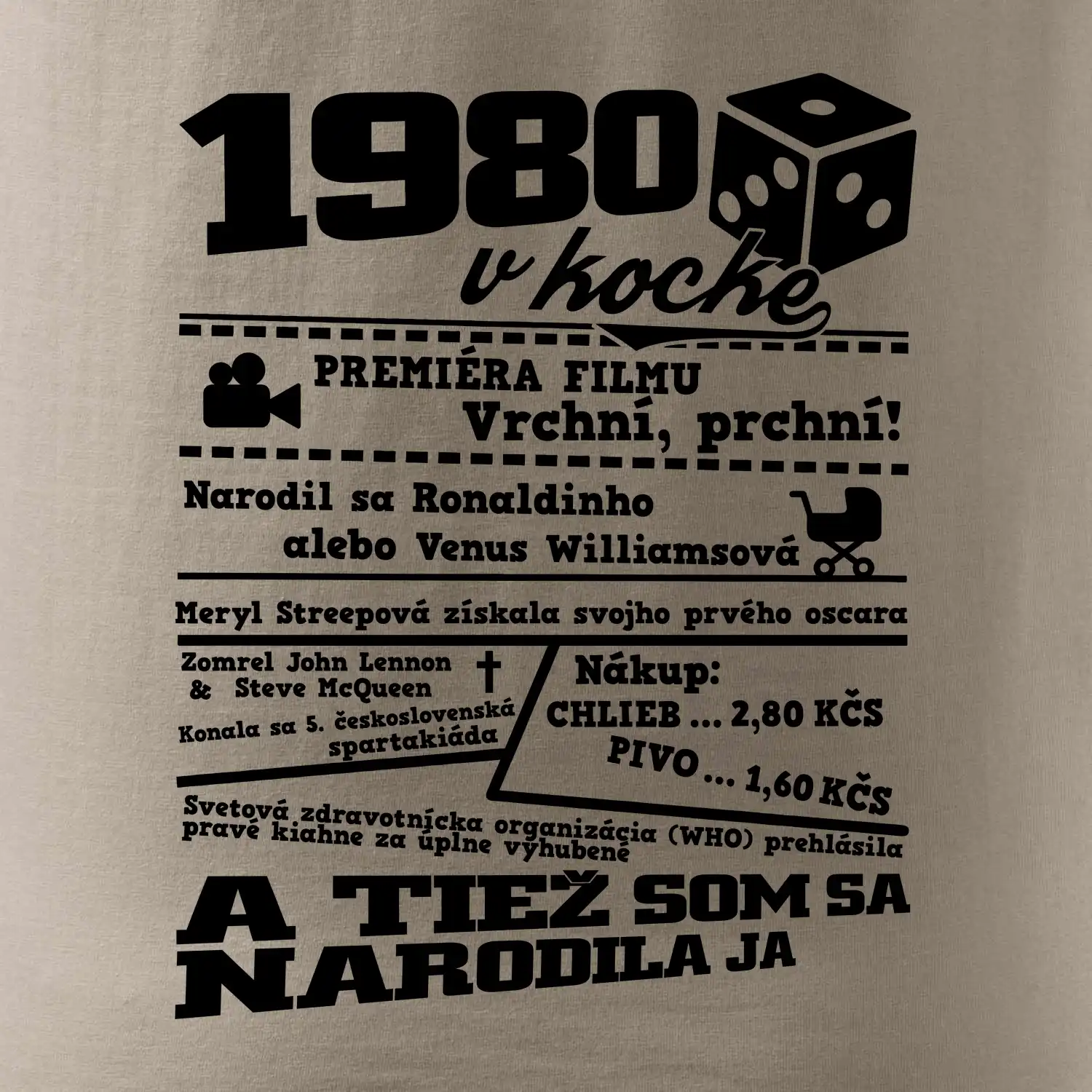Narodeninové tričko pre ročník 1980. Zháňaš originálny darček? Tričko pre ročník 1980 v kocke je ten najlepší darček, ktorým určite potešíš. Koľko čo stálo? Kto bol prezident? Kto sa narodil? Všetko toto a ešte oveľa viac nájdeš na našom narodeninovom triku!