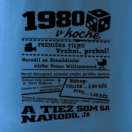 Narodeninové tričko pre ročník 1980. Zháňaš originálny darček? Tričko pre ročník 1980 v kocke je ten najlepší darček, ktorým určite potešíš. Koľko čo stálo? Kto bol prezident? Kto sa narodil? Všetko toto a ešte oveľa viac nájdeš na našom narodeninovom triku!