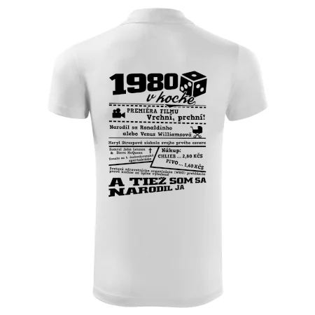 Narodeninové tričko pre ročník 1980. Zháňaš originálny darček? Tričko pre ročník 1980 v kocke je ten najlepší darček, ktorým určite potešíš. Koľko čo stálo? Kto bol prezident? Kto sa narodil? Všetko toto a ešte oveľa viac nájdeš na našom narodeninovom triku!