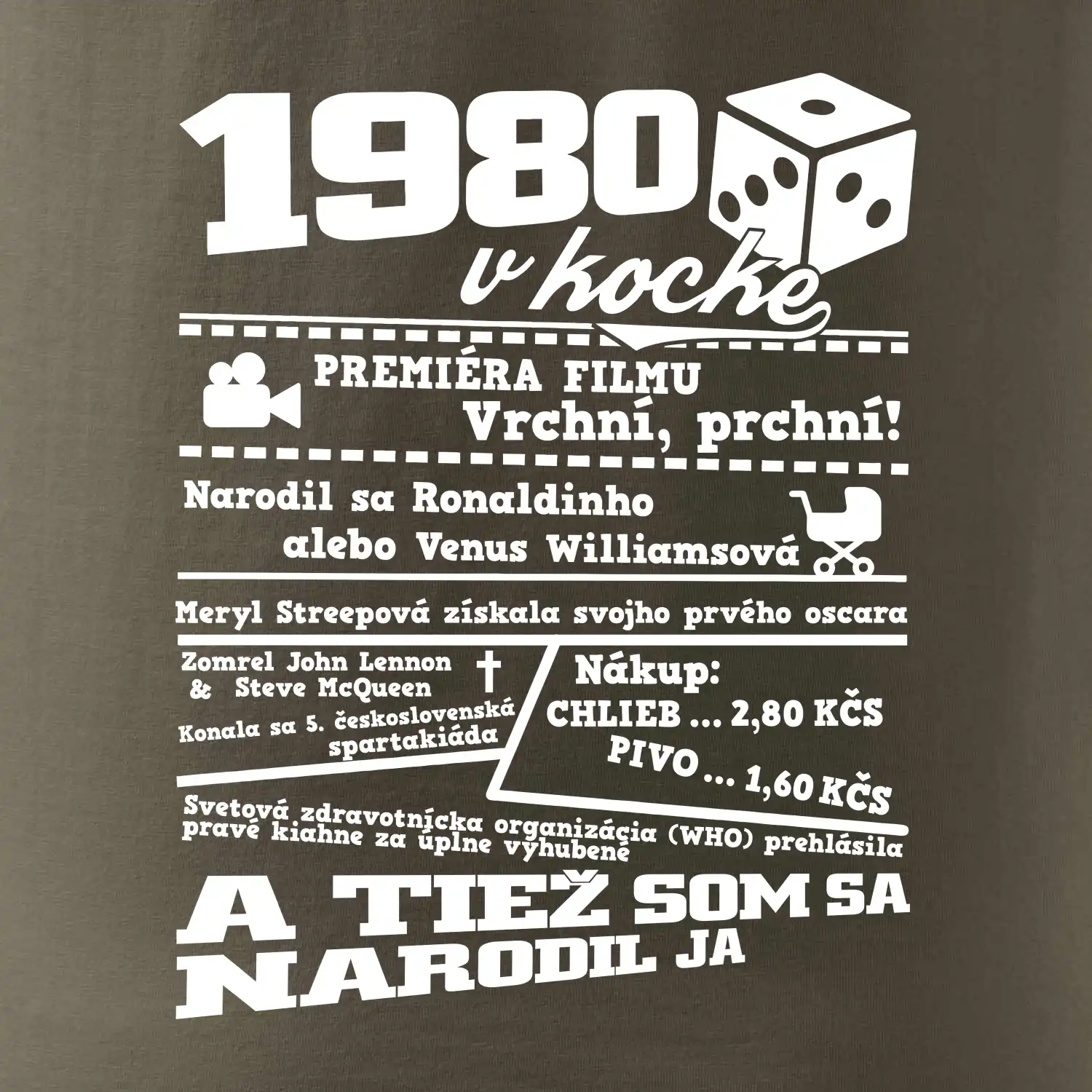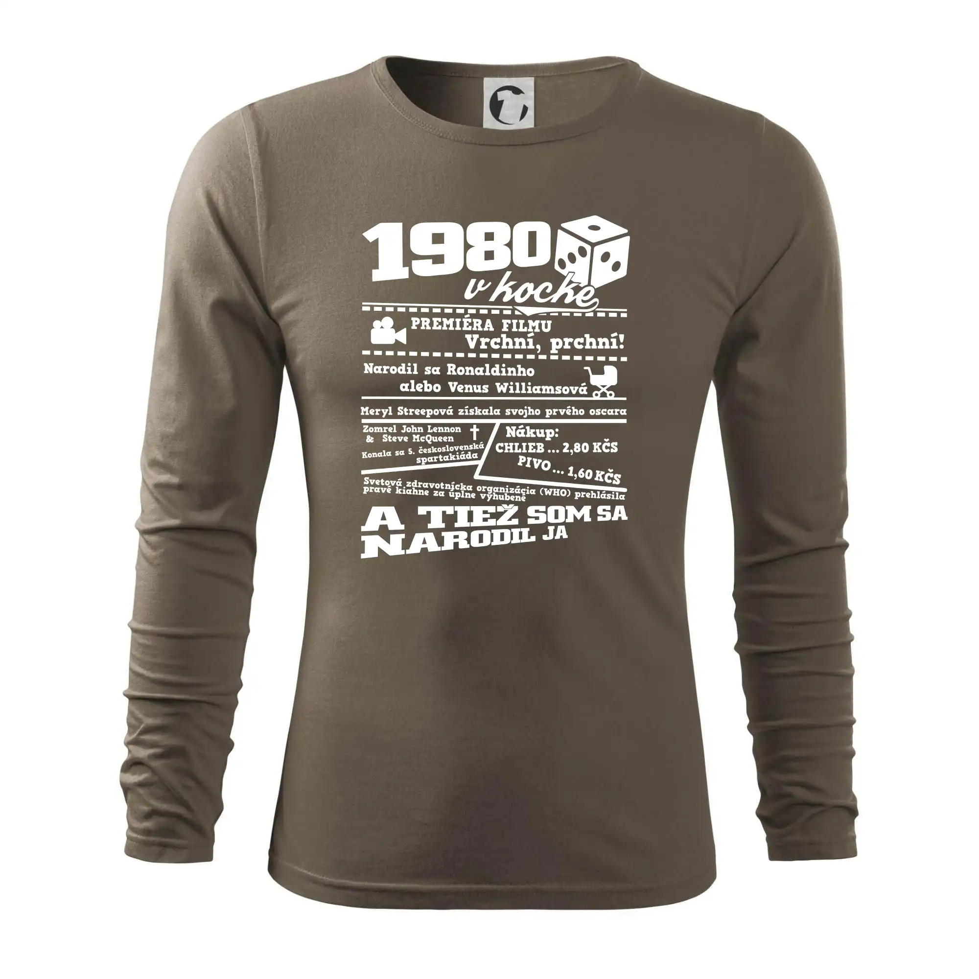 Narodeninové tričko pre ročník 1980. Zháňaš originálny darček? Tričko pre ročník 1980 v kocke je ten najlepší darček, ktorým určite potešíš. Koľko čo stálo? Kto bol prezident? Kto sa narodil? Všetko toto a ešte oveľa viac nájdeš na našom narodeninovom triku!