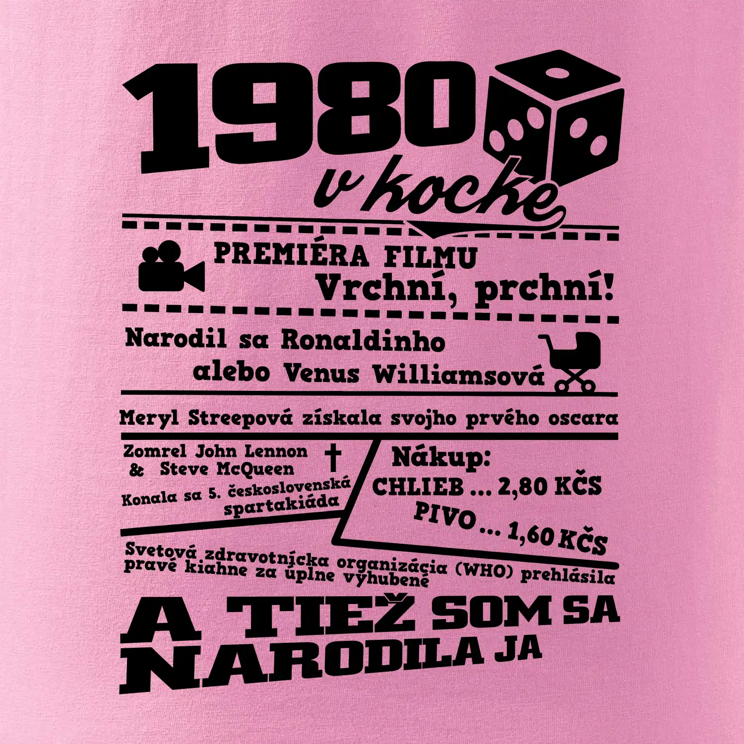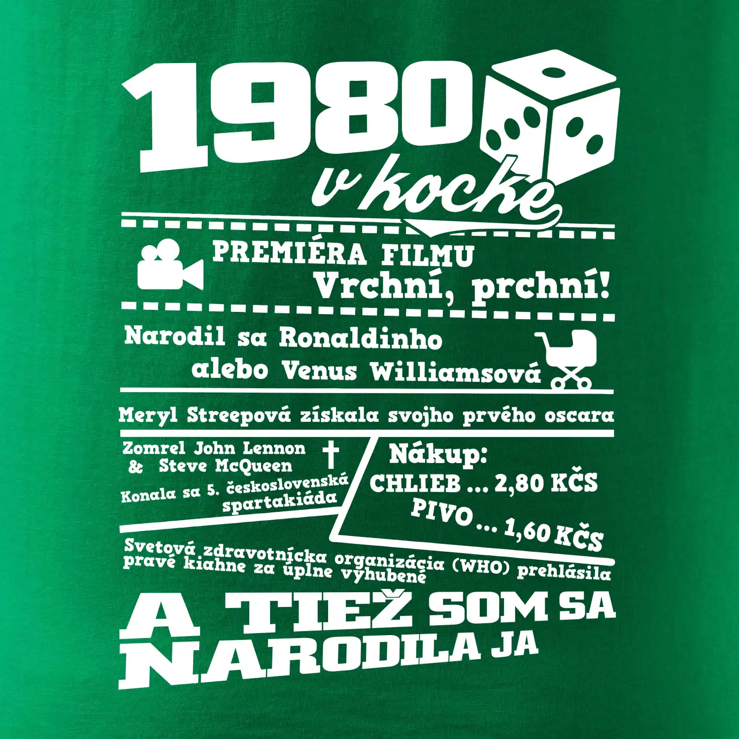 Narodeninové tričko pre ročník 1980. Zháňaš originálny darček? Tričko pre ročník 1980 v kocke je ten najlepší darček, ktorým určite potešíš. Koľko čo stálo? Kto bol prezident? Kto sa narodil? Všetko toto a ešte oveľa viac nájdeš na našom narodeninovom triku!