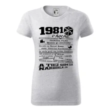 Narodeninové tričko pre ročník 1981. Zháňaš originálny darček? Tričko pre ročník 1981 v kocke je ten najlepší darček, ktorým určite potešíš. Koľko čo stálo? Kto bol prezident? Kto sa narodil? Všetko toto a ešte oveľa viac nájdeš na našom narodeninovom triku!