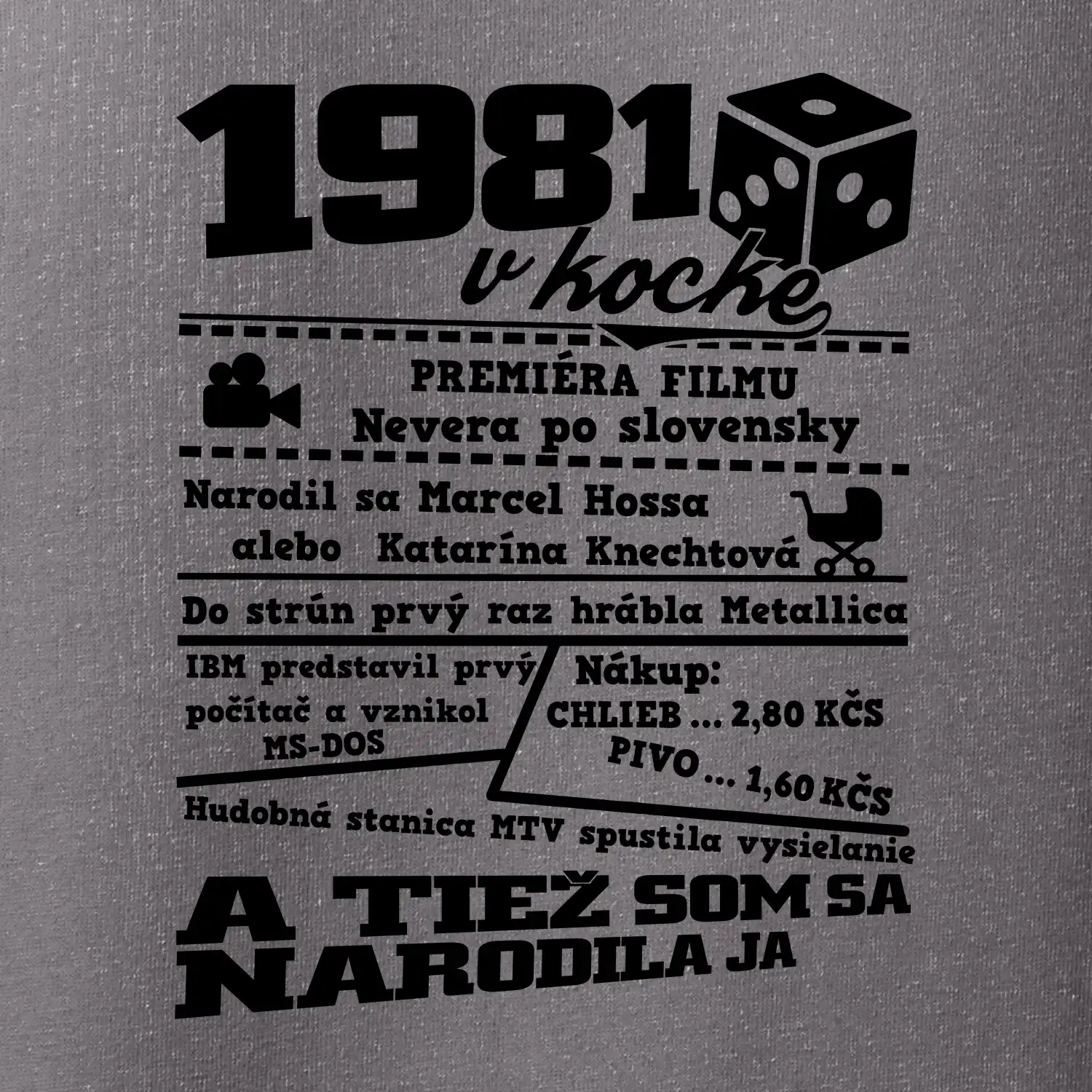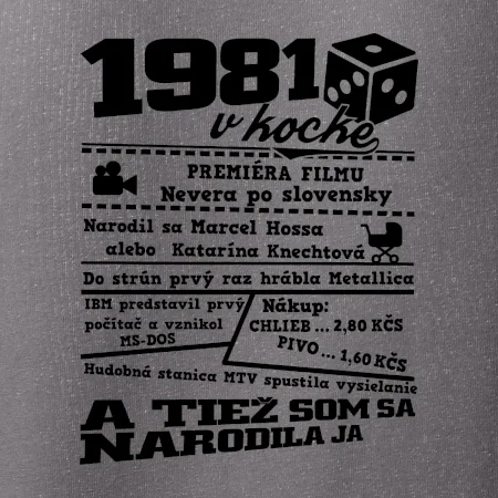 Narodeninové tričko pre ročník 1981. Zháňaš originálny darček? Tričko pre ročník 1981 v kocke je ten najlepší darček, ktorým určite potešíš. Koľko čo stálo? Kto bol prezident? Kto sa narodil? Všetko toto a ešte oveľa viac nájdeš na našom narodeninovom triku!