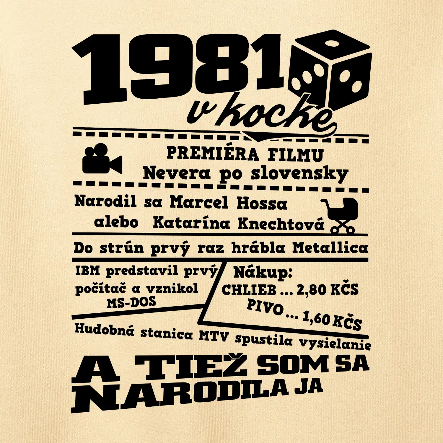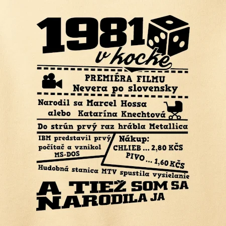 Narodeninové tričko pre ročník 1981. Zháňaš originálny darček? Tričko pre ročník 1981 v kocke je ten najlepší darček, ktorým určite potešíš. Koľko čo stálo? Kto bol prezident? Kto sa narodil? Všetko toto a ešte oveľa viac nájdeš na našom narodeninovom triku!