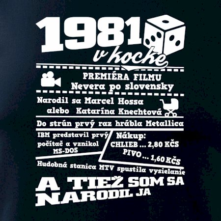 Narodeninové tričko pre ročník 1981. Zháňaš originálny darček? Tričko pre ročník 1981 v kocke je ten najlepší darček, ktorým určite potešíš. Koľko čo stálo? Kto bol prezident? Kto sa narodil? Všetko toto a ešte oveľa viac nájdeš na našom narodeninovom triku!