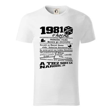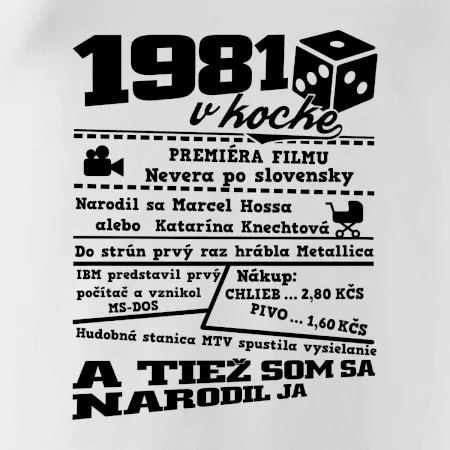 Narodeninové tričko pre ročník 1981. Zháňaš originálny darček? Tričko pre ročník 1981 v kocke je ten najlepší darček, ktorým určite potešíš. Koľko čo stálo? Kto bol prezident? Kto sa narodil? Všetko toto a ešte oveľa viac nájdeš na našom narodeninovom triku!