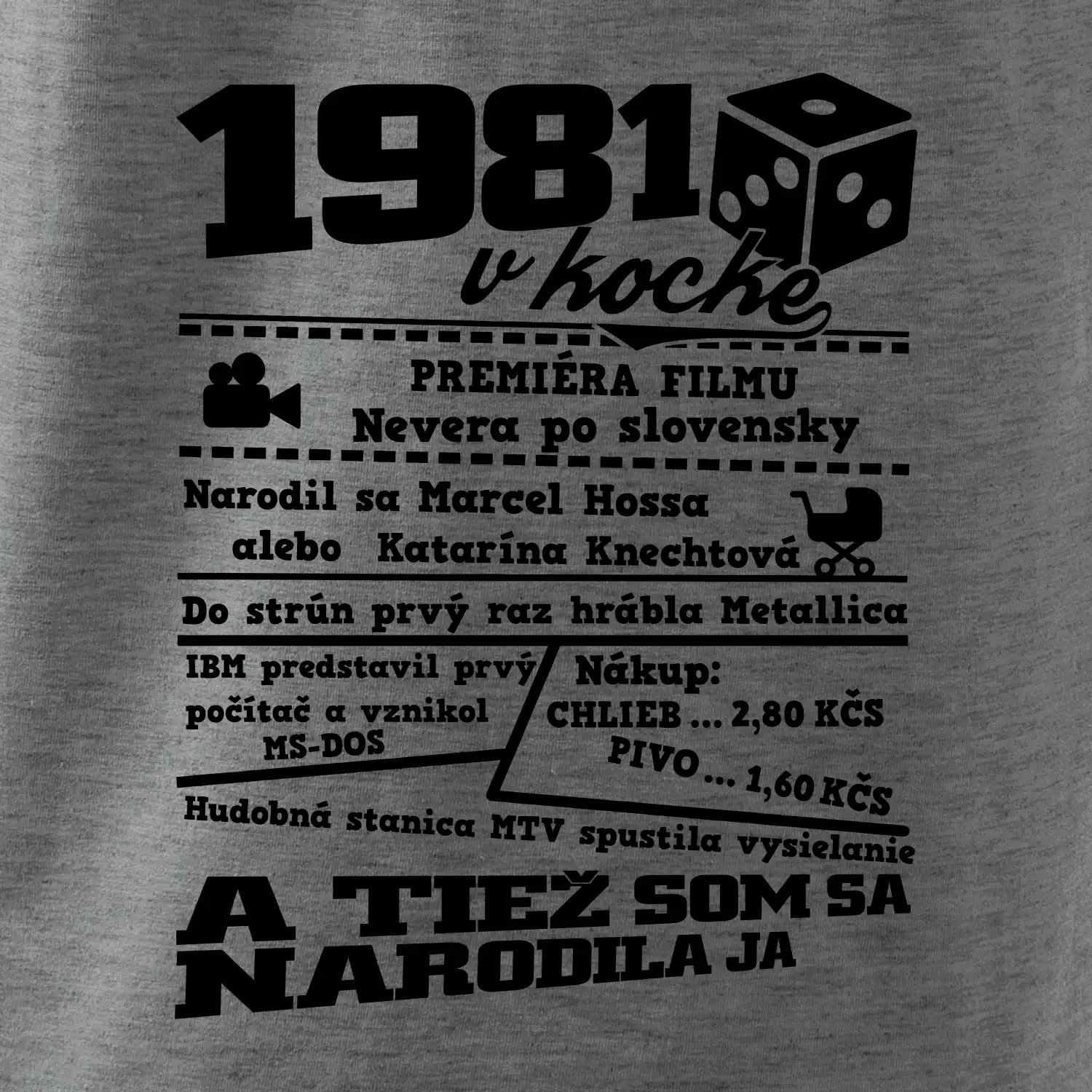 Narodeninové tričko pre ročník 1981. Zháňaš originálny darček? Tričko pre ročník 1981 v kocke je ten najlepší darček, ktorým určite potešíš. Koľko čo stálo? Kto bol prezident? Kto sa narodil? Všetko toto a ešte oveľa viac nájdeš na našom narodeninovom triku!