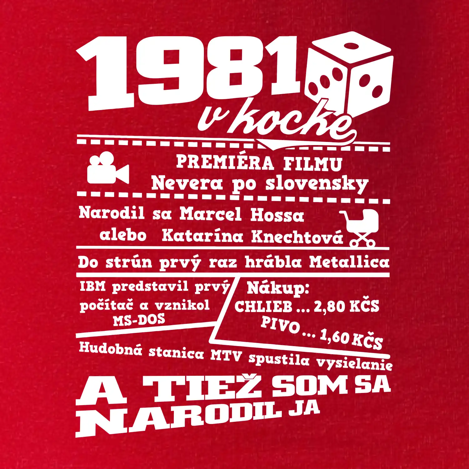 Narodeninové tričko pre ročník 1981. Zháňaš originálny darček? Tričko pre ročník 1981 v kocke je ten najlepší darček, ktorým určite potešíš. Koľko čo stálo? Kto bol prezident? Kto sa narodil? Všetko toto a ešte oveľa viac nájdeš na našom narodeninovom triku!
