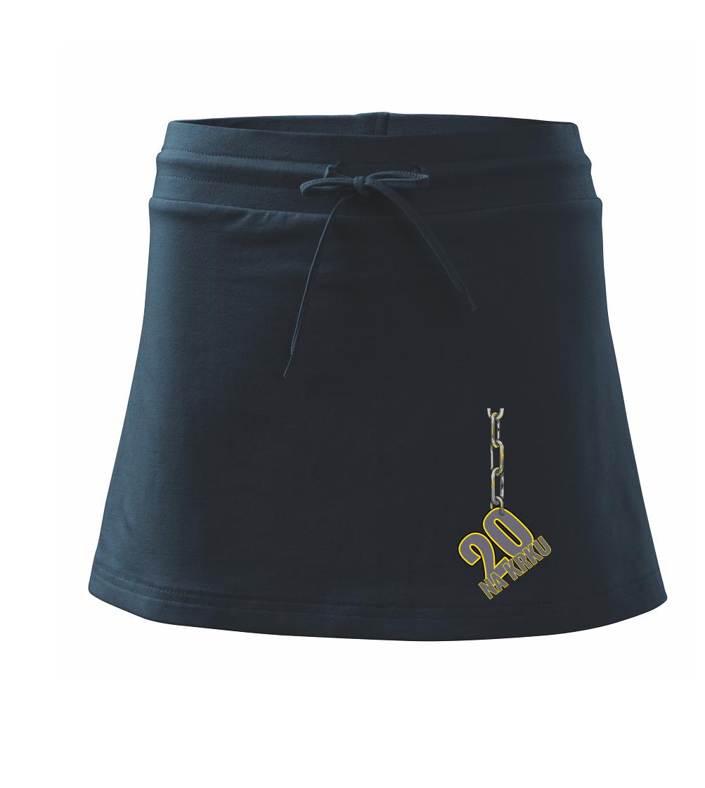 Dámska kraťasová sukňa MALFINI Two in One 604 je perfektnou kombináciou sukne a šortiek, ideálna na šport, voľný čas alebo ležérne nosenie. Vďaka prídavku elastanu si sukňa zachováva tvar a ponúka pohodlie pri pohybe. Krátky strih do tvaru „A“ a široký elastický pás so sťahovacou šnúrkou zabezpečujú voľnosť a prispôsobenie.