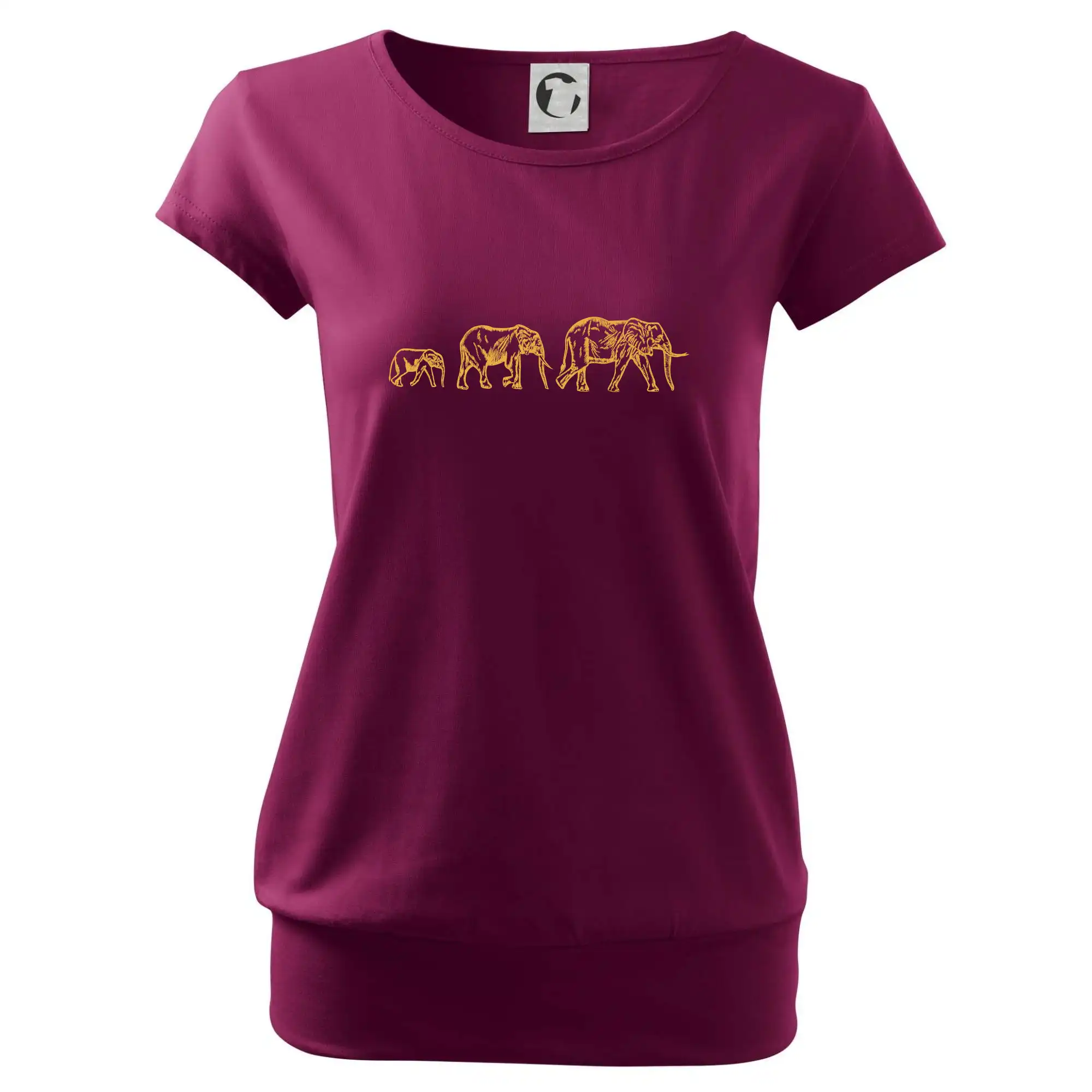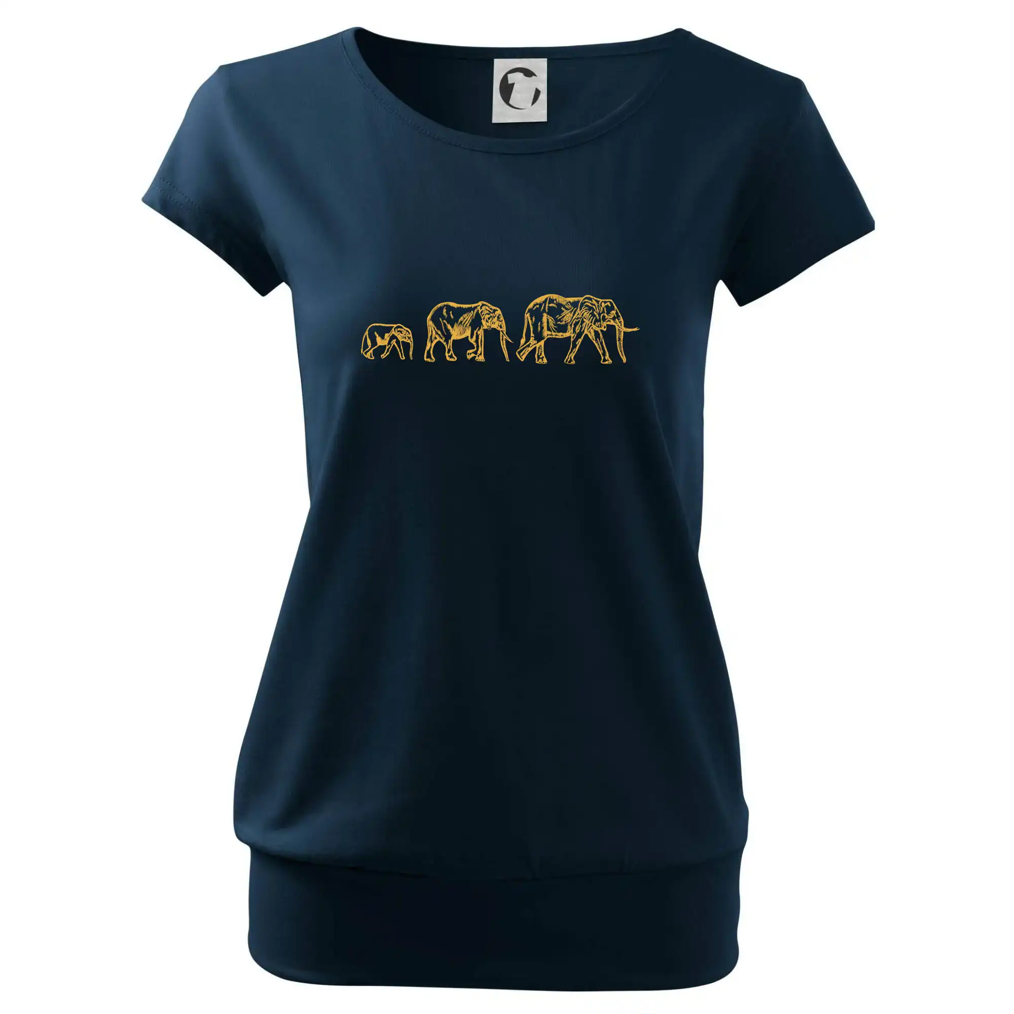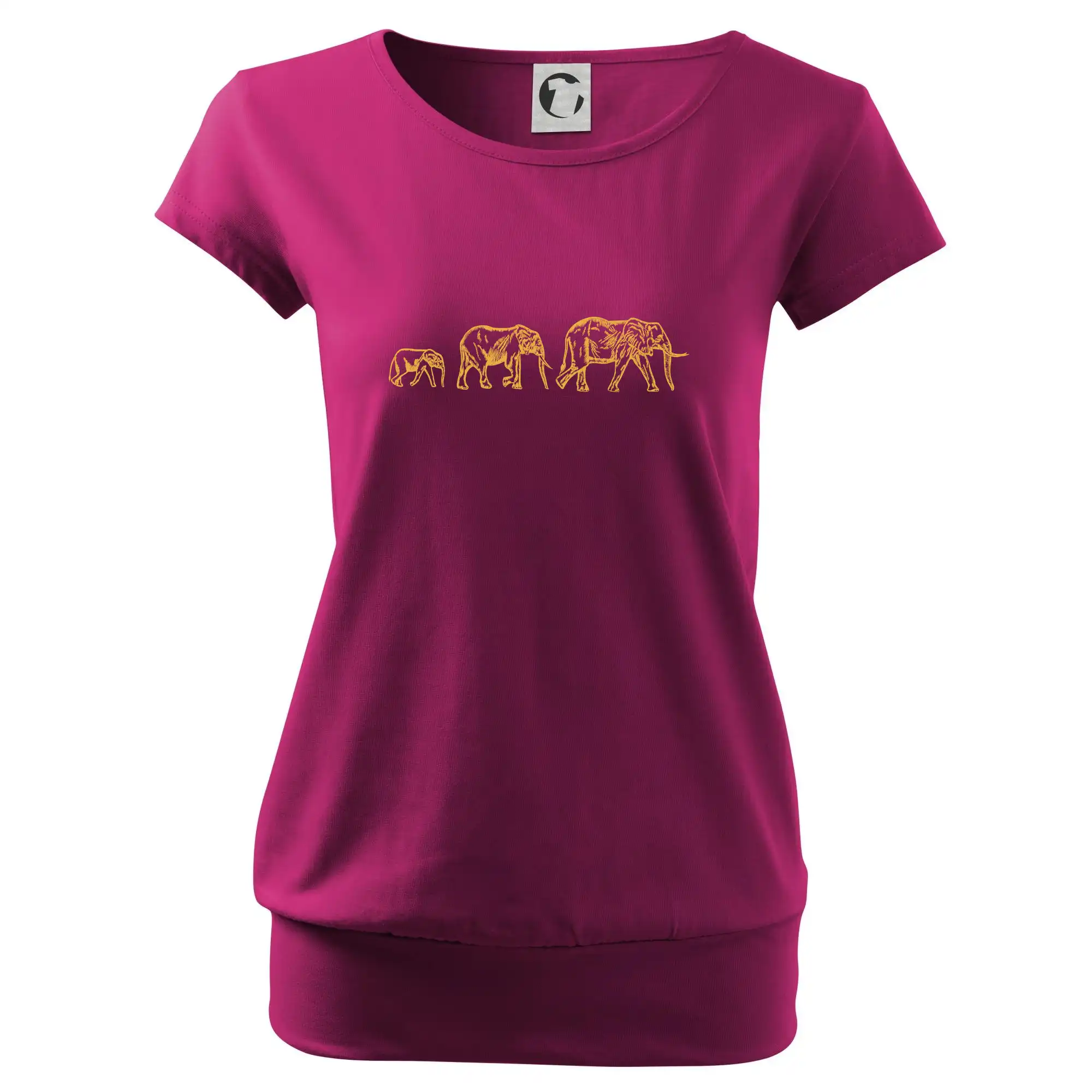 Trendové dámske tričko s veľmi krátkym rukávom, voľnejšieho strihu, v dolnom kraji všité do širokého lemu. Okrúhly priekrčník s úzkym lemom zo zhodného materiálu.