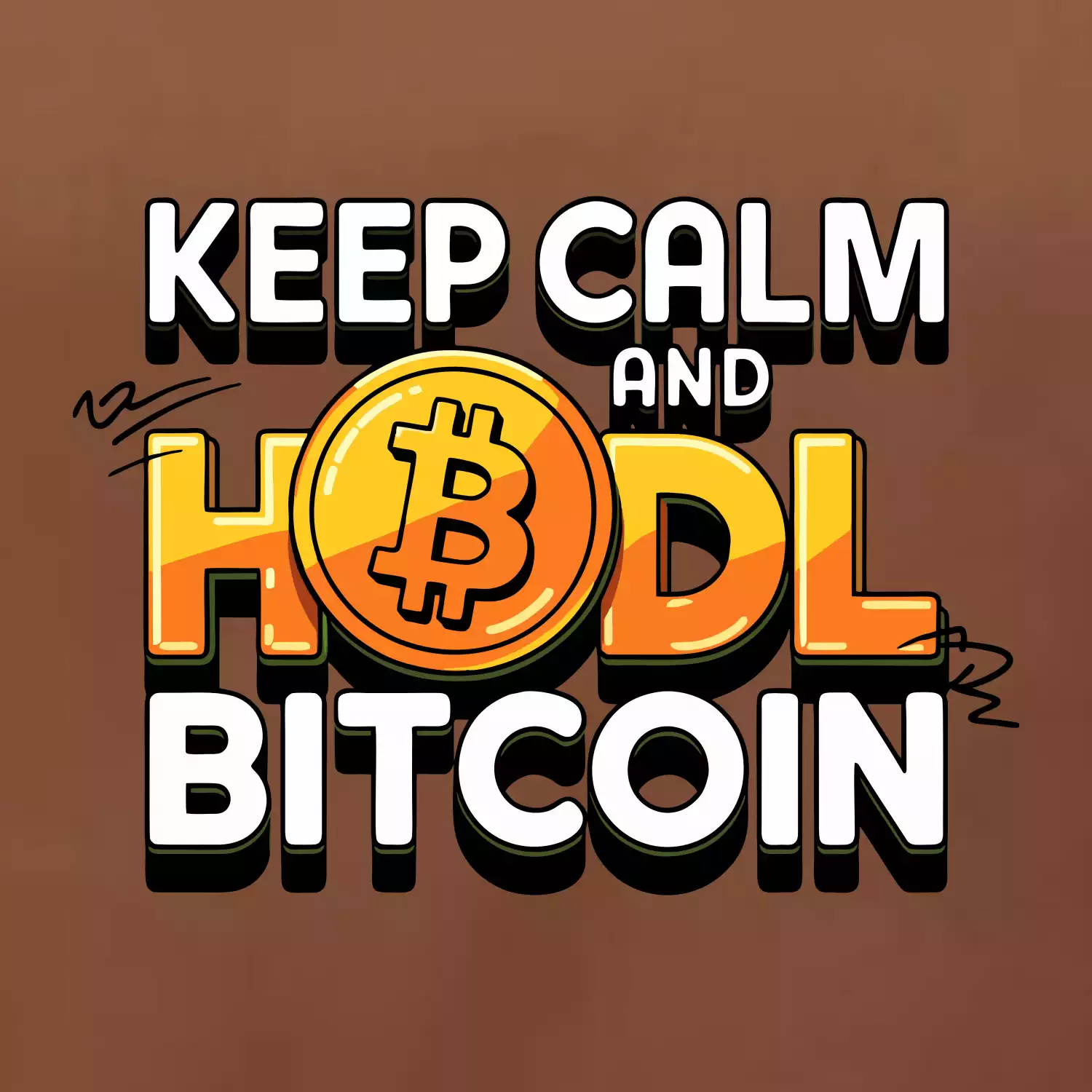 3D nápis Keep Calm and HODL Bitcoin