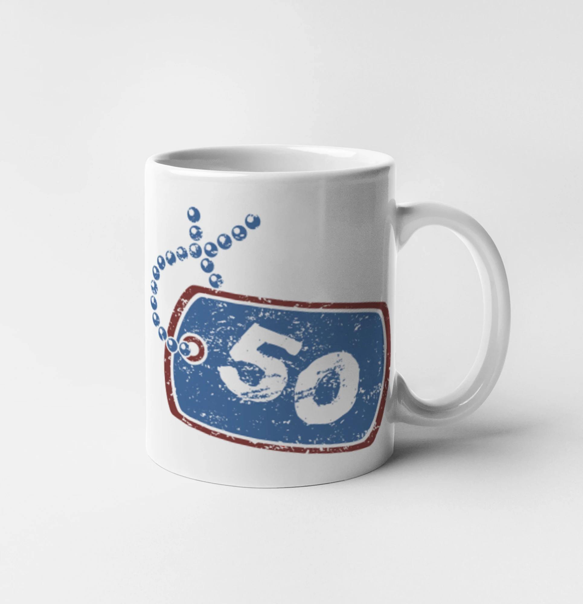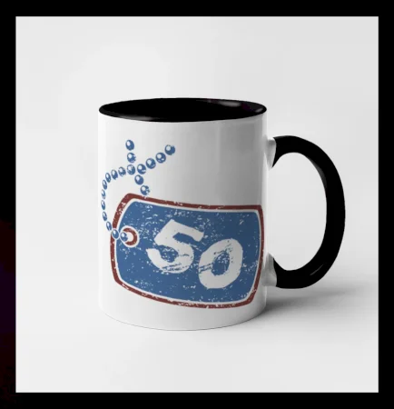 Narodeninové tričko pre oslávenca, ktorý oslavuje jubileum 50 rokov. Tričko, na ktorom je psia známka s číslovkou 50. Darček k päťdesiatym narodeninám.