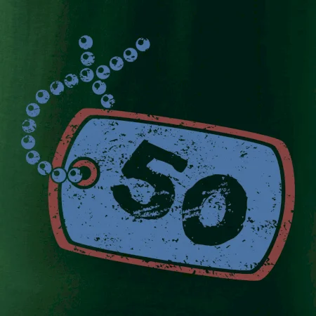 Narodeninové tričko pre oslávenca, ktorý oslavuje jubileum 50 rokov. Tričko, na ktorom je psia známka s číslovkou 50. Darček k päťdesiatym narodeninám.