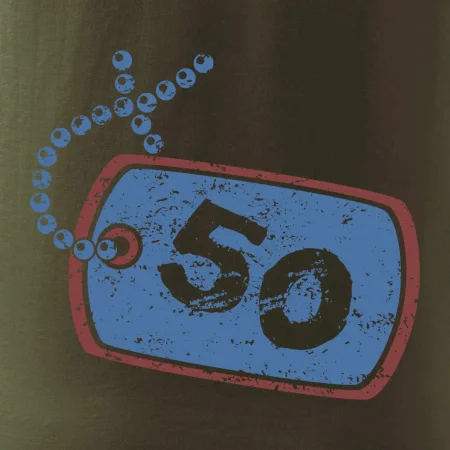 Narodeninové tričko pre oslávenca, ktorý oslavuje jubileum 50 rokov. Tričko, na ktorom je psia známka s číslovkou 50. Darček k päťdesiatym narodeninám.
