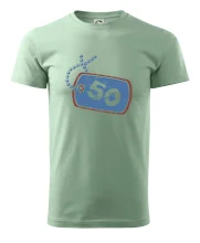 Narodeninové tričko pre oslávenca, ktorý oslavuje jubileum 50 rokov. Tričko, na ktorom je psia známka s číslovkou 50. Darček k päťdesiatym narodeninám.
