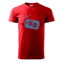 Narodeninové tričko pre oslávenca, ktorý oslavuje jubileum 50 rokov. Tričko, na ktorom je psia známka s číslovkou 50. Darček k päťdesiatym narodeninám.