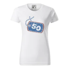 Narodeninové tričko pre oslávenca, ktorý oslavuje jubileum 50 rokov. Tričko, na ktorom je psia známka s číslovkou 50. Darček k päťdesiatym narodeninám.