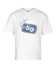Narodeninové tričko pre oslávenca, ktorý oslavuje jubileum 50 rokov. Tričko, na ktorom je psia známka s číslovkou 50. Darček k päťdesiatym narodeninám.
