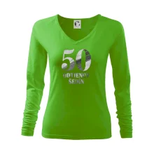 Dámske tričko s ľahko priliehavým strihom, ktorý pôsobí elegantne a skvele padne. Tento typ trička má kratšie rukávy a hlbší výstrih zakončený jemným lemovaním.