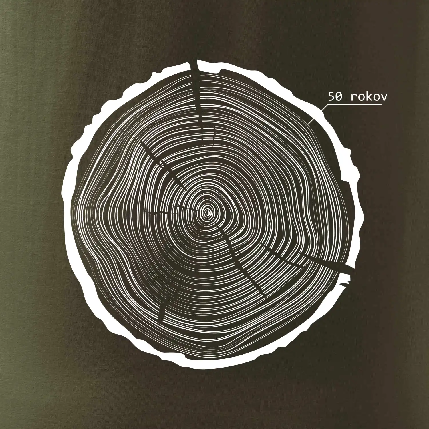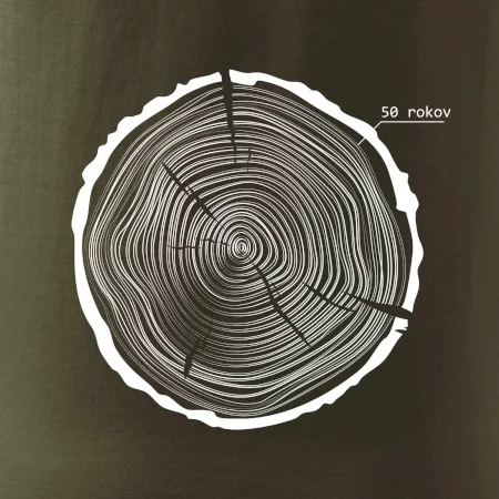 Grafika tvorí kruhy pripomínajúce letokruhy stromu, v ktorých sa opakuje číslo 50 ako symbol veku — vrstvy života znázornené jednoduchým, prírodným motívo