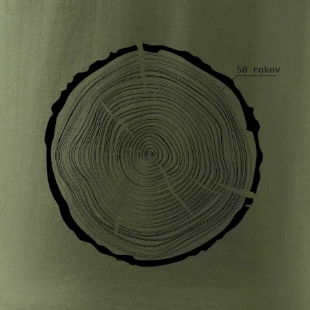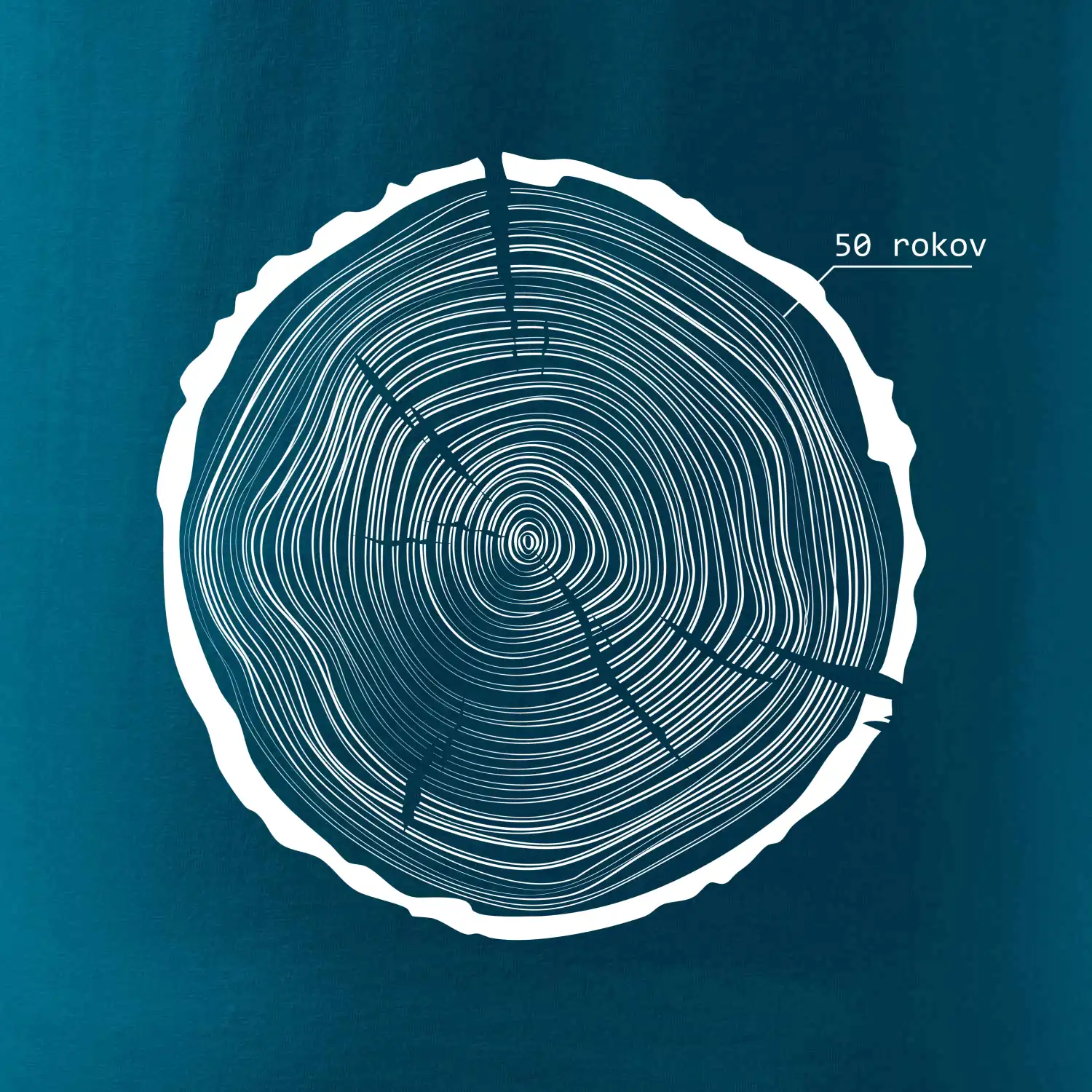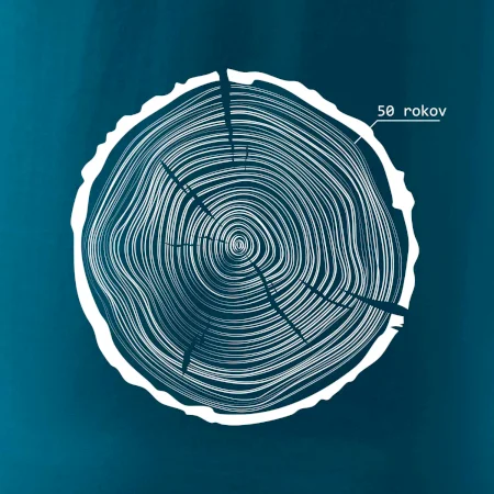 Grafika tvorí kruhy pripomínajúce letokruhy stromu, v ktorých sa opakuje číslo 50 ako symbol veku — vrstvy života znázornené jednoduchým, prírodným motívo
