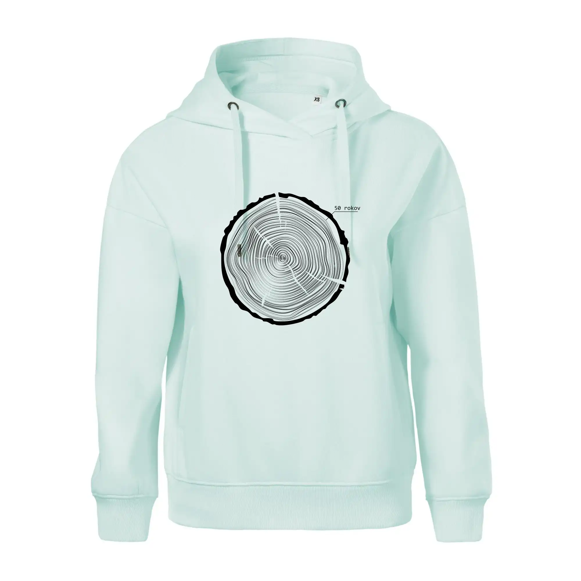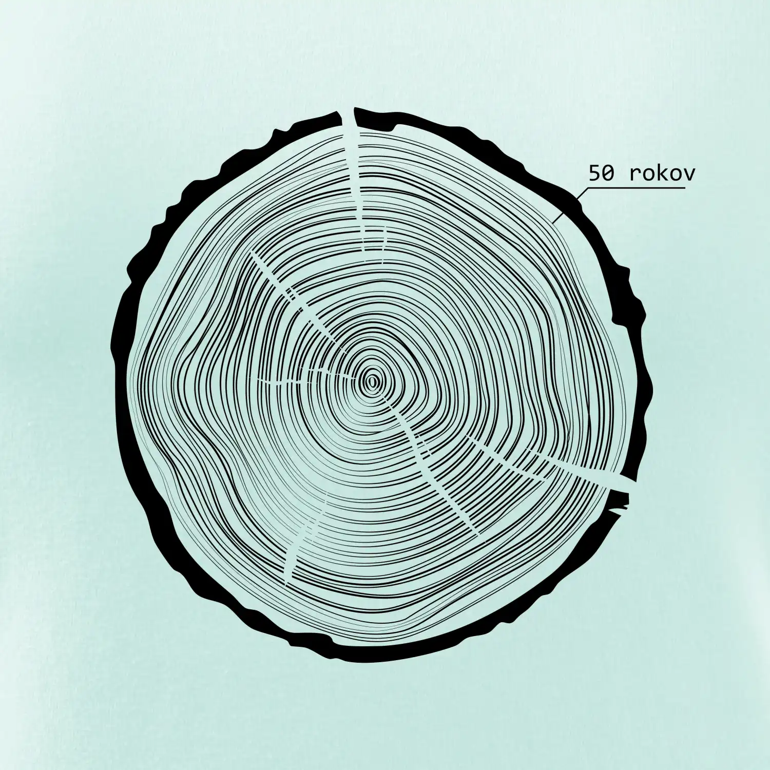 Grafika tvorí kruhy pripomínajúce letokruhy stromu, v ktorých sa opakuje číslo 50 ako symbol veku — vrstvy života znázornené jednoduchým, prírodným motívo