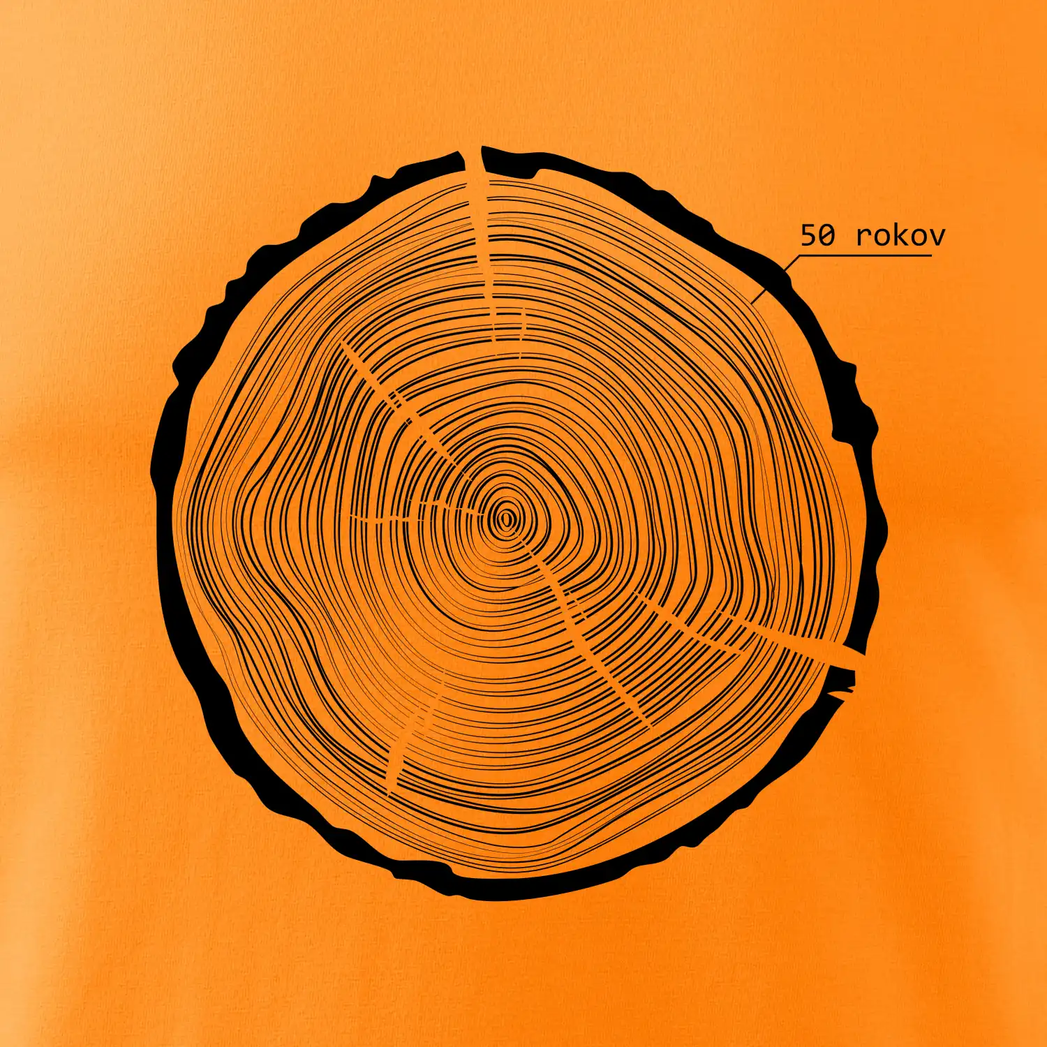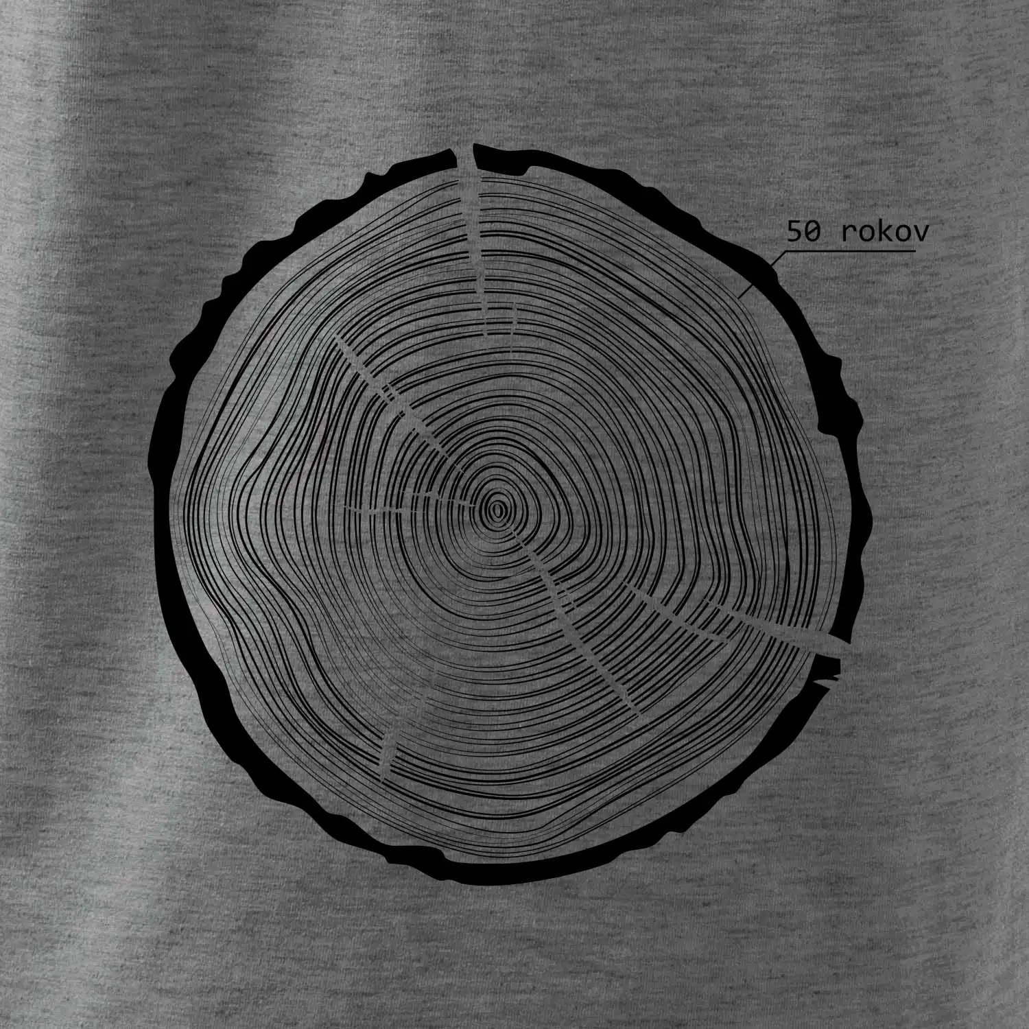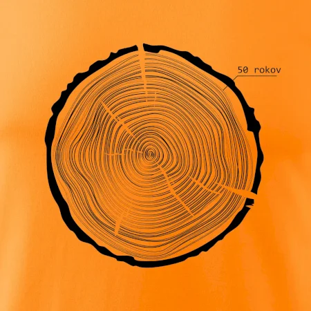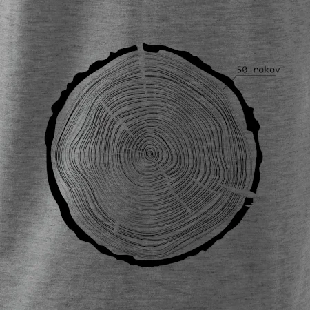 Grafika tvorí kruhy pripomínajúce letokruhy stromu, v ktorých sa opakuje číslo 50 ako symbol veku — vrstvy života znázornené jednoduchým, prírodným motívo