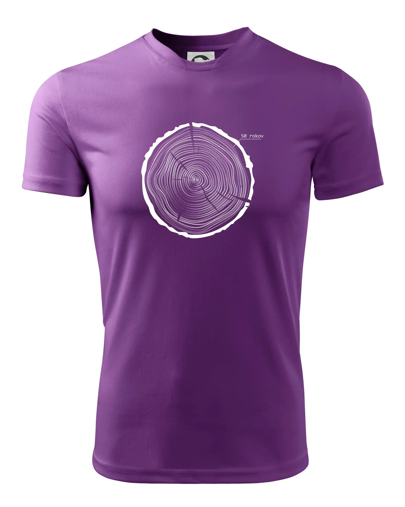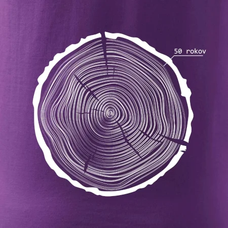 Grafika tvorí kruhy pripomínajúce letokruhy stromu, v ktorých sa opakuje číslo 50 ako symbol veku — vrstvy života znázornené jednoduchým, prírodným motívo
