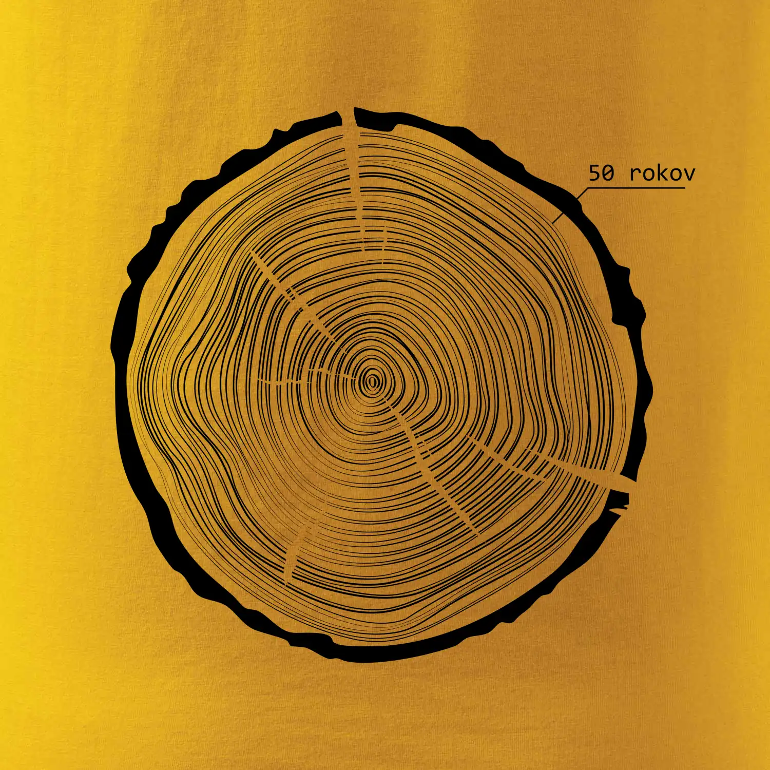 Grafika tvorí kruhy pripomínajúce letokruhy stromu, v ktorých sa opakuje číslo 50 ako symbol veku — vrstvy života znázornené jednoduchým, prírodným motívo