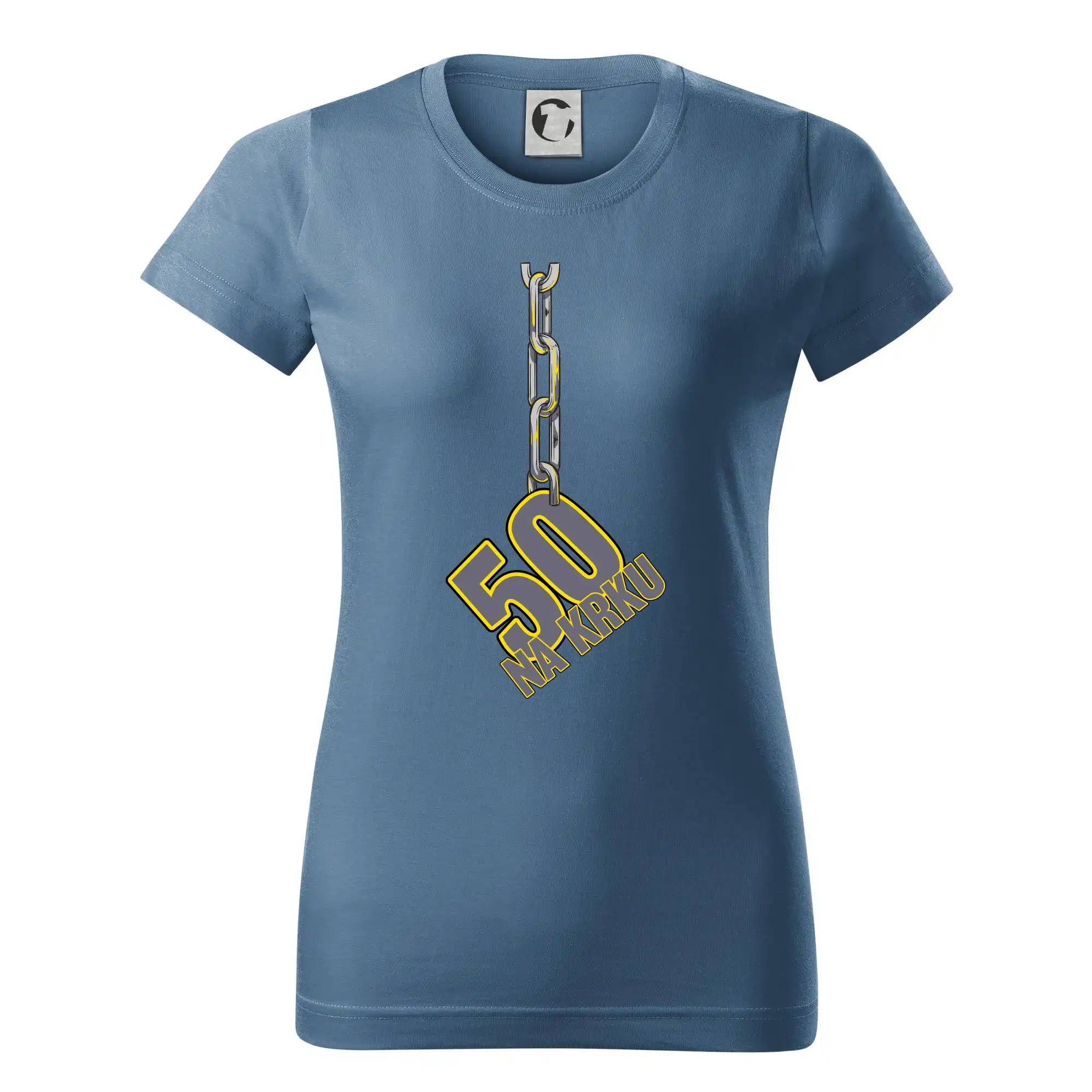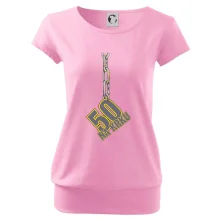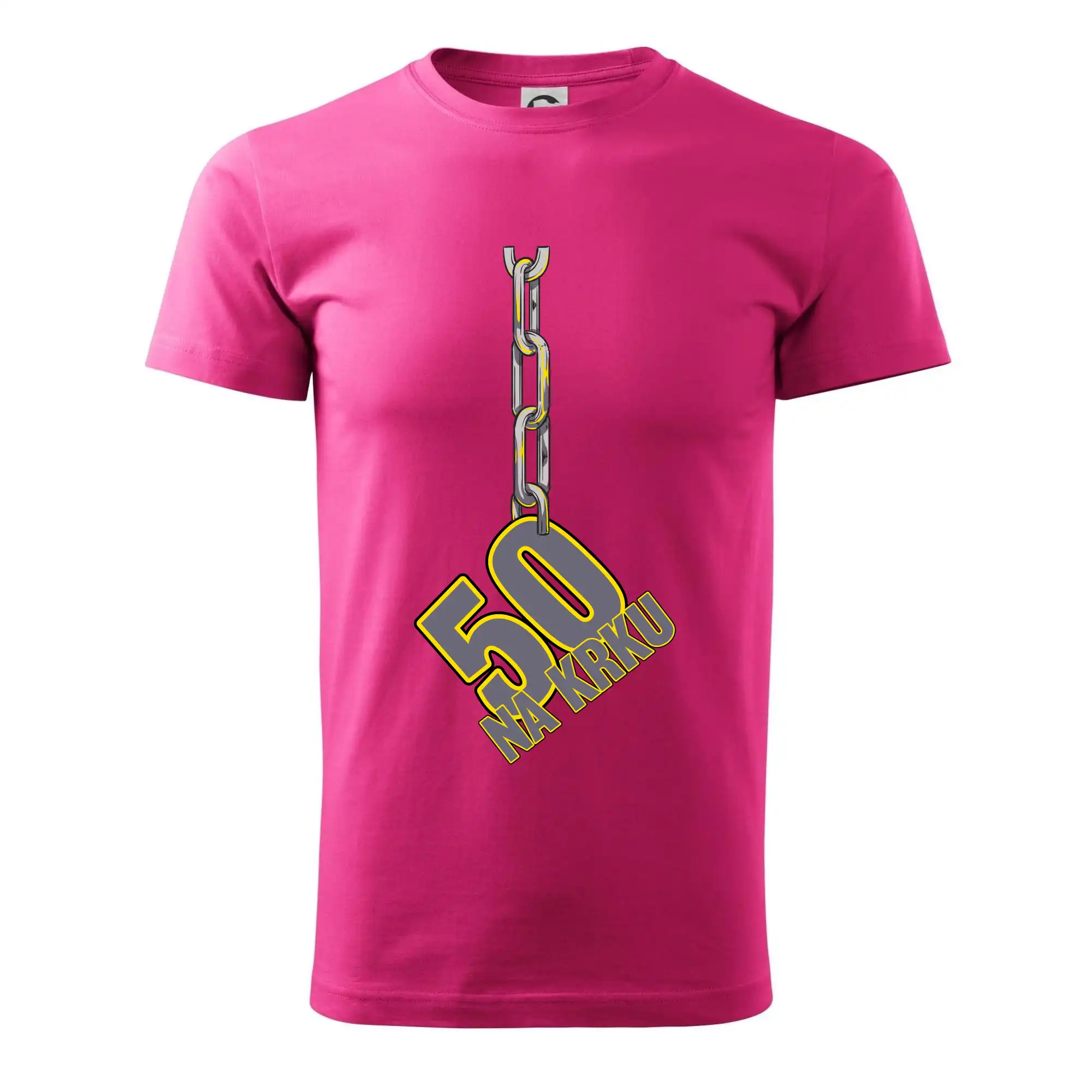 Narodeninové tričko pre oslávenca, ktorý oslavuje jubileum 50 rokov. Tričko, na ktorom je číslovka 50 na reťazi. Darček k päťdesiatym narodeninám.