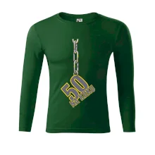 Narodeninové tričko pre oslávenca, ktorý oslavuje jubileum 50 rokov. Tričko, na ktorom je číslovka 50 na reťazi. Darček k päťdesiatym narodeninám.