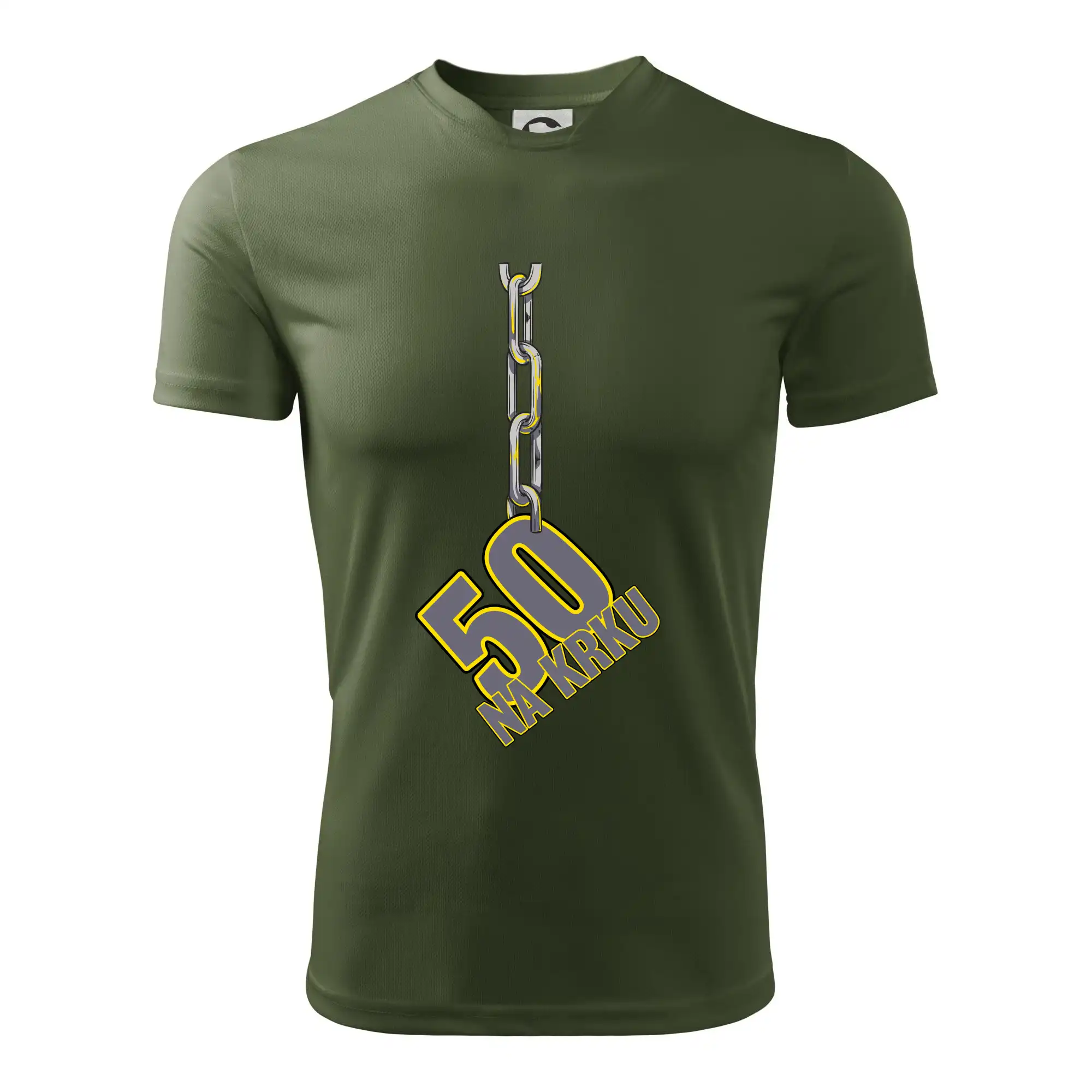 Narodeninové tričko pre oslávenca, ktorý oslavuje jubileum 50 rokov. Tričko, na ktorom je číslovka 50 na reťazi. Darček k päťdesiatym narodeninám.