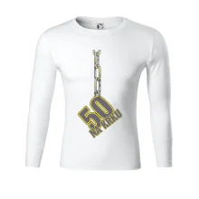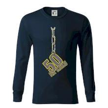 Narodeninové tričko pre oslávenca, ktorý oslavuje jubileum 50 rokov. Tričko, na ktorom je číslovka 50 na reťazi. Darček k päťdesiatym narodeninám.
