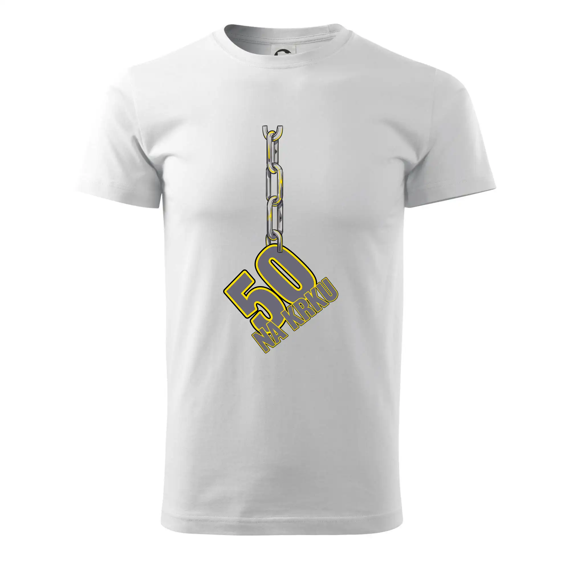 Narodeninové tričko pre oslávenca, ktorý oslavuje jubileum 50 rokov. Tričko, na ktorom je číslovka 50 na reťazi. Darček k päťdesiatym narodeninám.