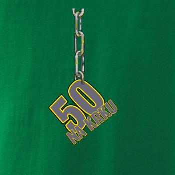 Narodeninové tričko pre oslávenca, ktorý oslavuje jubileum 50 rokov. Tričko, na ktorom je číslovka 50 na reťazi. Darček k päťdesiatym narodeninám.