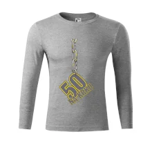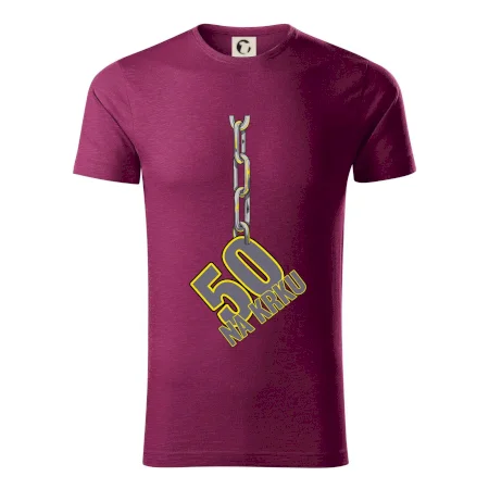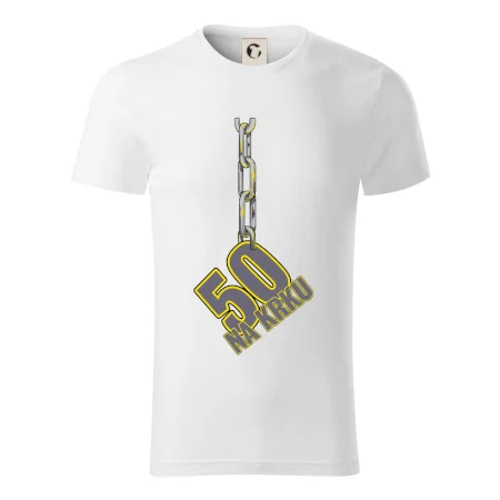 Narodeninové tričko pre oslávenca, ktorý oslavuje jubileum 50 rokov. Tričko, na ktorom je číslovka 50 na reťazi. Darček k päťdesiatym narodeninám.